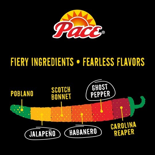 Pace Salsa blends ripe tomatoes, chunks of savory onion, jalapeno peppers, and habanero extract for an extra hot salsa with spicy kick