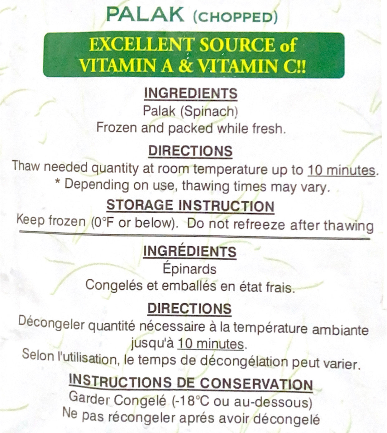 Thaw needed quantity of palak blocks and use as desired. (Once thawed, do not refreeze).