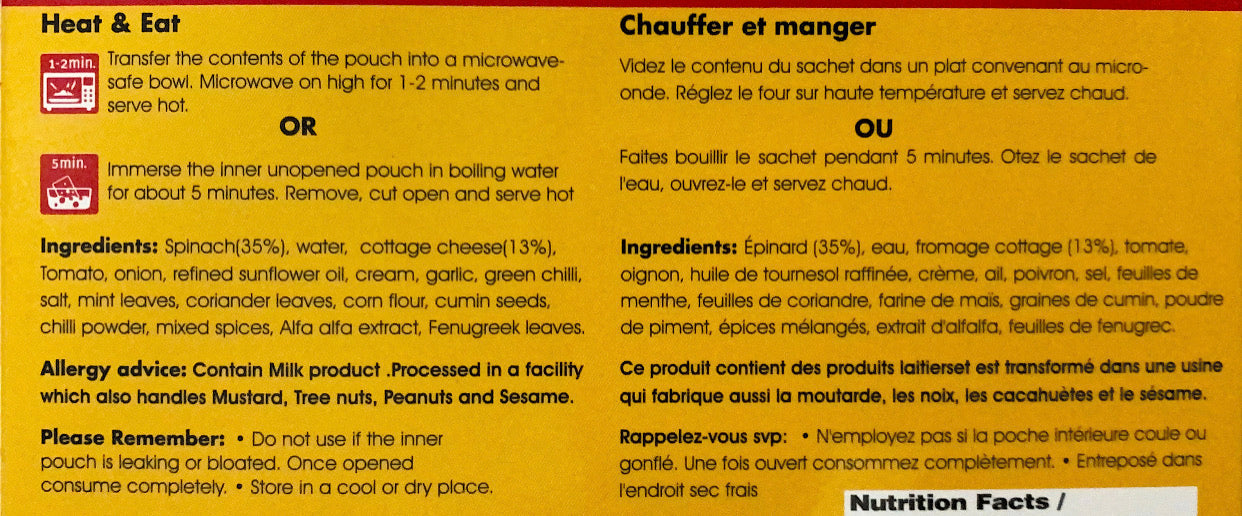 Mild spiced tender chunks of cottage cheese in a fresh green Spinach gravy, the north indian favourite, 100% natural ingredients without preservatives. Our range of products cover wide range of delicious North Indian and South Indian recipes, to give you a taste of food which taste just like fresh home cooked food. It is your ready help in kitchen for authentic taste, variety of choices in different Indian cuisines and high on convenience. Our range currently comprises of Soups, Vegetable curries, Paneer gravies and various rice items.