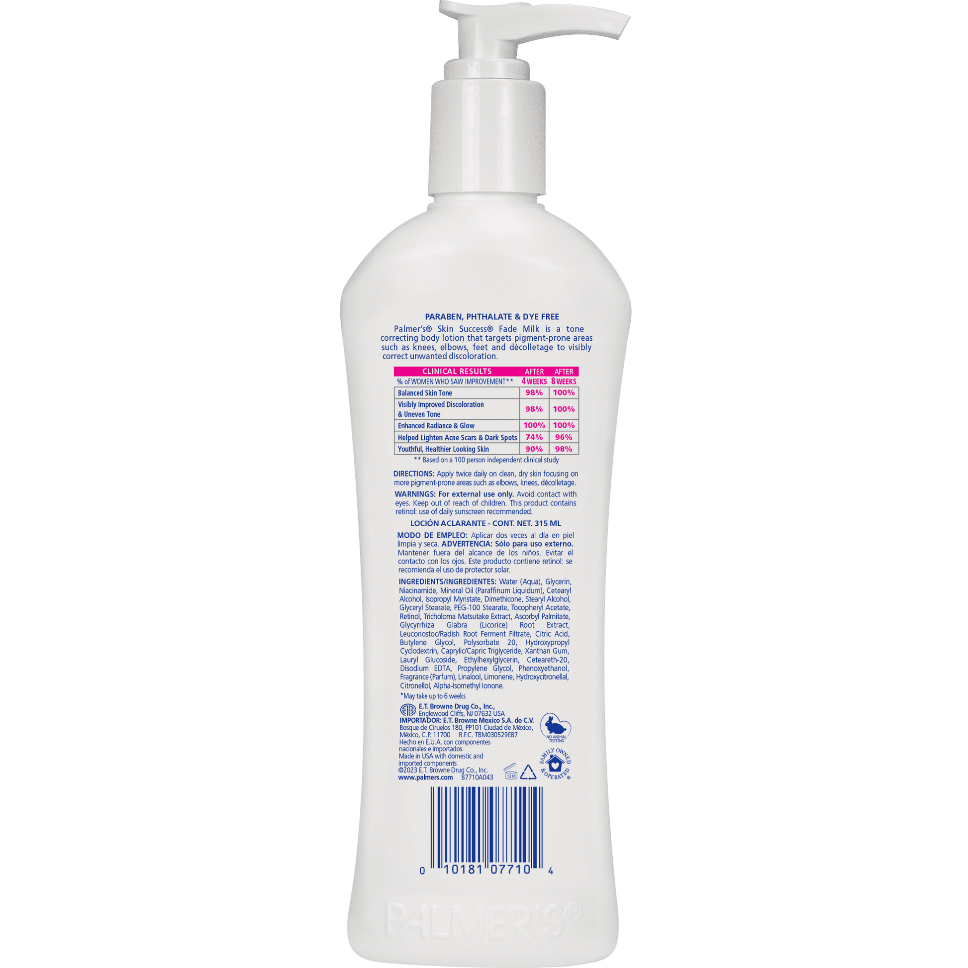 Palmer's Skin Success Anti-Dark Spot Fade Milk is a daily body lotion that gives you a flawlessly radiant body by effectively correcting discoloration on pigment-prone areas of the body such as arms, legs, knees, elbows and decolletage.