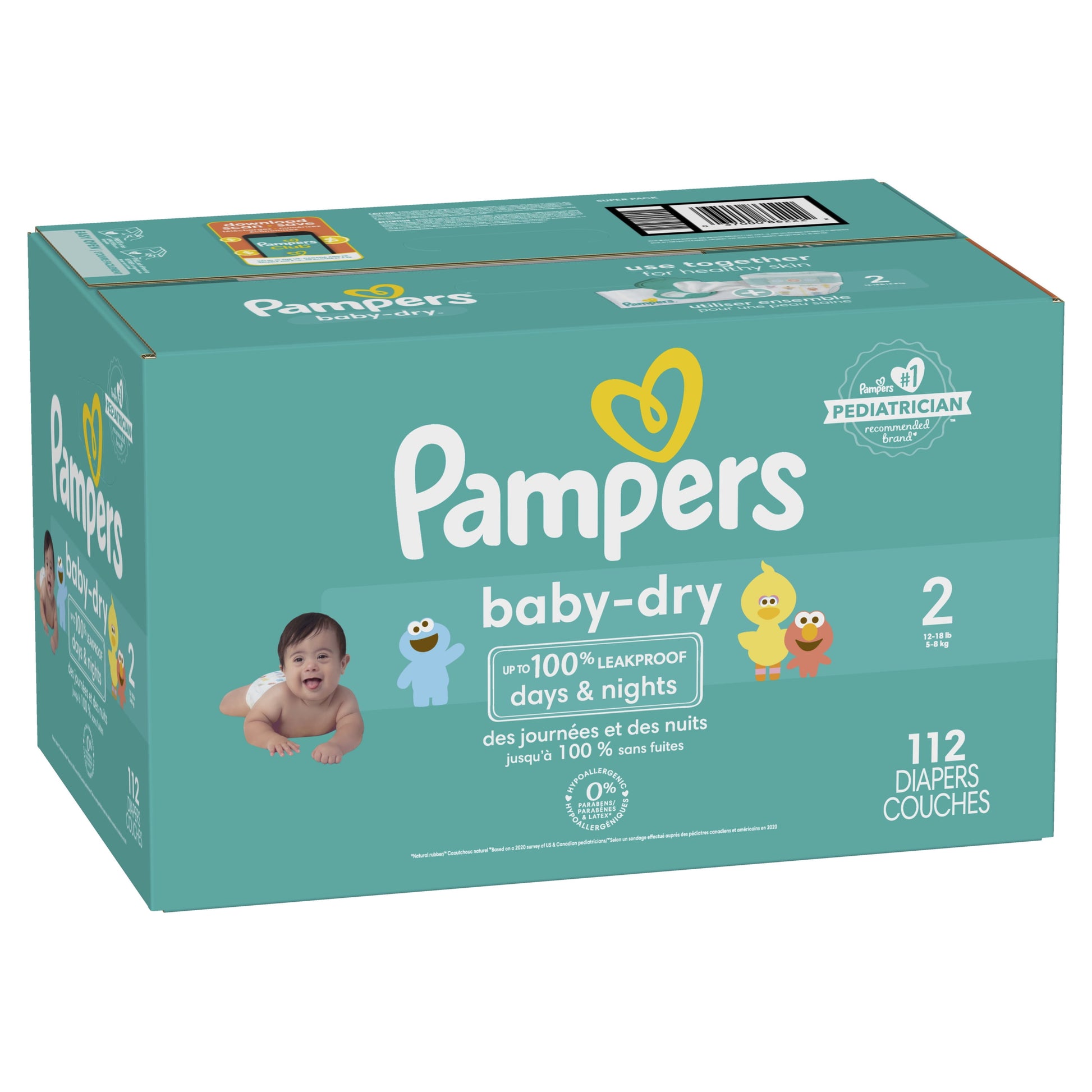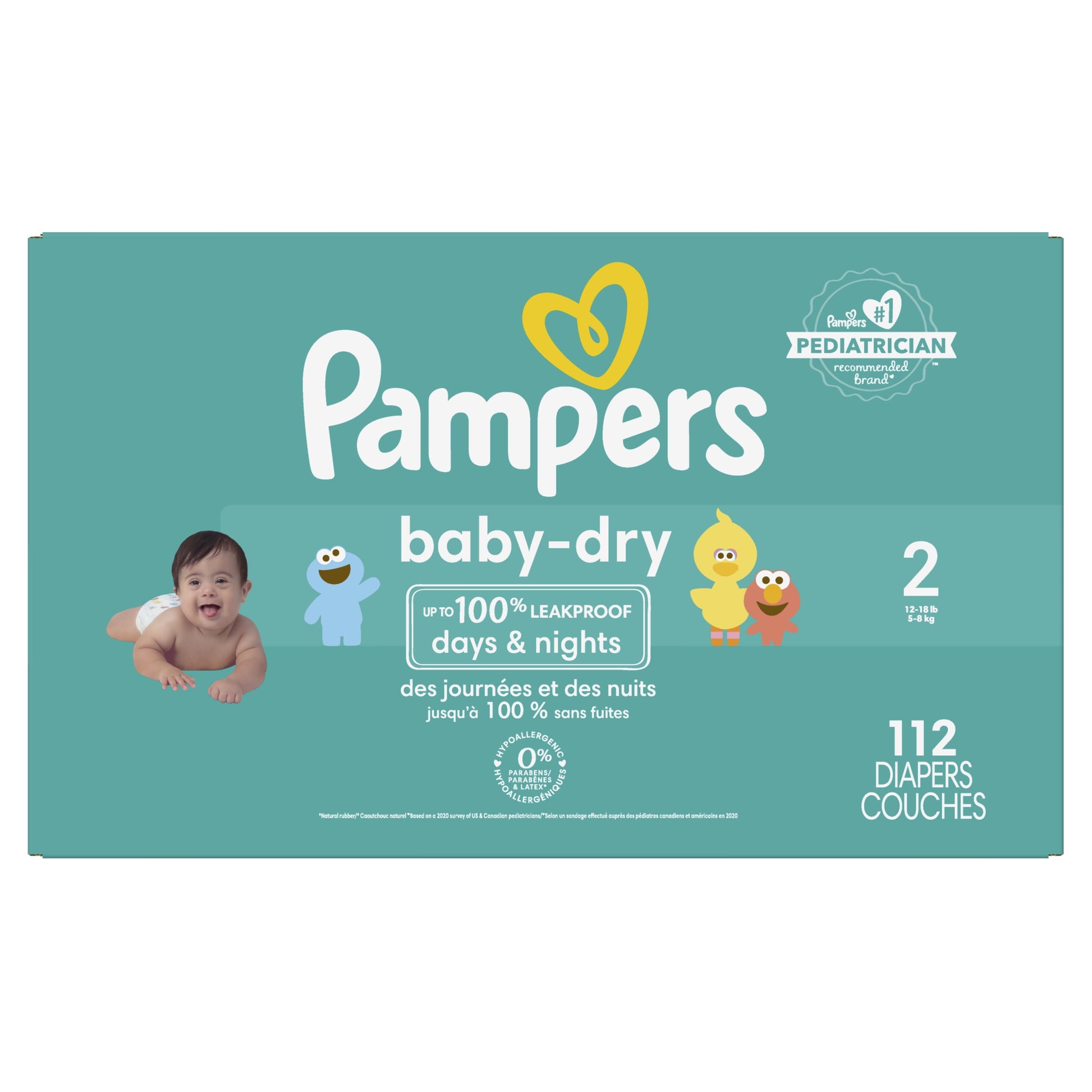 A good night's sleep starts with a great diaper, and Pampers Baby-Dry diapers give you and your baby up to 100% leakproof nights and happy mornings. Made to protect your baby's delicate skin, our exclusive Lock-Away Channels absorb wetness and lock it safely away, while our protective Dri-Weave Liner helps keep skin healthy. Plus, our Baby-Dry Diapers are hypoallergenic and completely free of parabens and latex.* These are just a few of the many reasons Pampers is the #1 pediatrician recommended diaper brand-and your baby's best bet for comfy protection. Pampers also keep messes to a minimum. To help contain leaks and prevent blowouts, our Baby-Dry diapers feature all-around stretchy sides and large tape fasteners for a secure and comfy fit. 112 Count