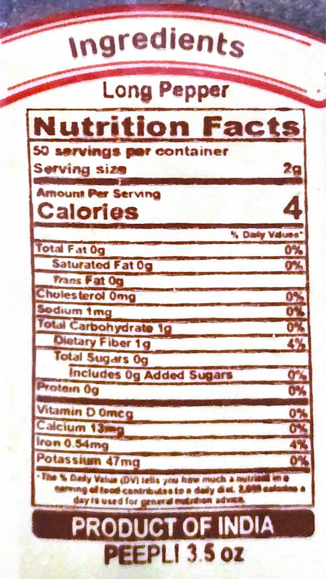 Long Pepper is known as Peepli or Pippali and has a similar taste to its close relative black pepper. Long pepper has a hotter and more intense flavor.