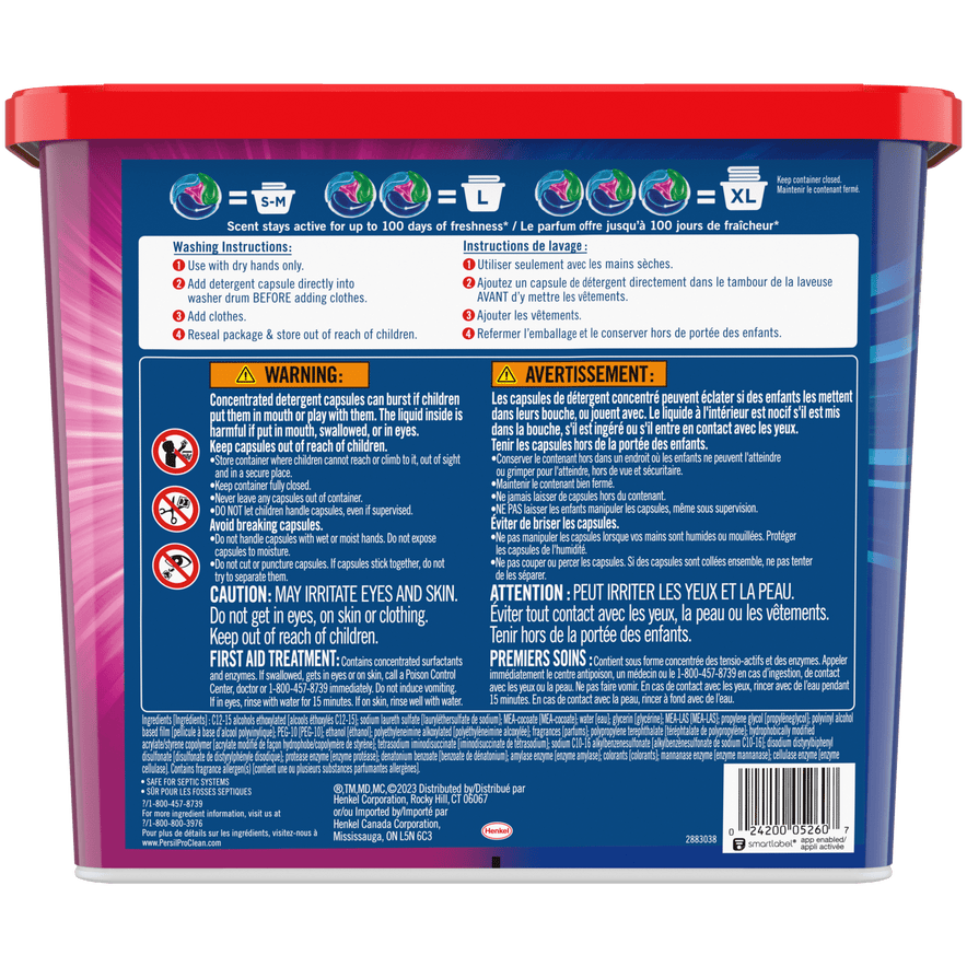 Persil ProClean Intense Fresh discs are a single use laundry detergent disc in the convenient form of a pre-measured pac. With unique four chamber technology, the four chambers work together to provide an advanced deep clean, stain removal, fiber care, and fresh release technology for up to 100 days of freshness*. Persil discs are easy to use, just place the laundry pacs into your empty washing machine drum before adding laundry. Persil discs go deep into fabric, attacking tough-to-clean stains to deliver an exceptional deep clean and freshness for your laundry. Persil discs clean effectively in all water temperatures, including cold water, and work in all washer types, including high efficiency (HE) washing machines.*out of storage