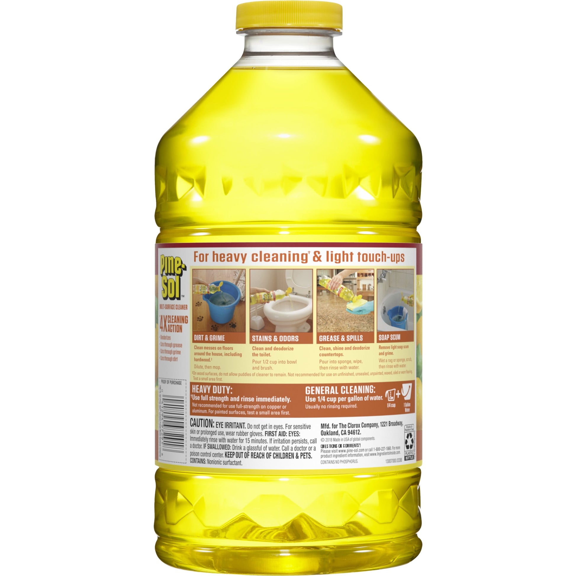 Pine-Sol® All Purpose Cleaner gives you 4x cleaning action cutting through dirt, grime and grease, and deodorizing your home with a great, long lasting scent. This concentrated formula cleaner can tackle any challenge; just mix Pine-Sol® with water at different strengths to adjust your cleaning power each time, unlike premixed cleaners. Pine-Sol® All Purpose Cleaner is safe to use on most hard non-porous surfaces including finished hardwood, ceramic tile, linoleum, plastic, and leaves no sticky residue. With the power of Pine-Sol® on your side, you only have to clean once to get the job done right.