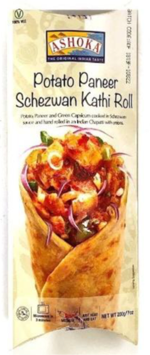 A delicate treat of potatoes and green peas along with green chutney and onions hand rolled in an indian chapatti.