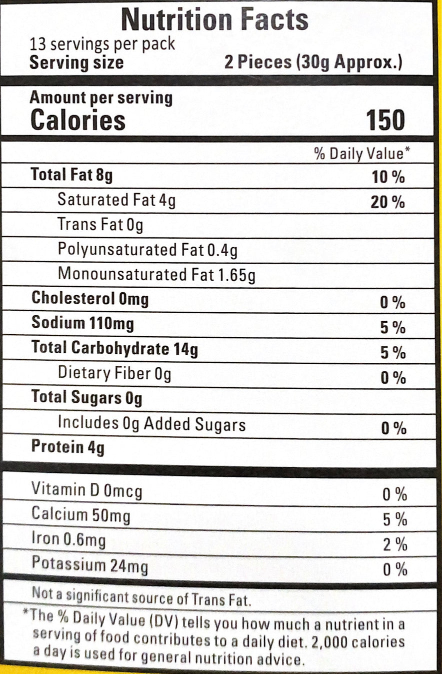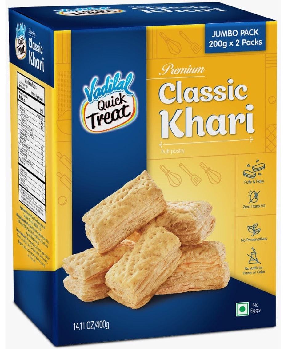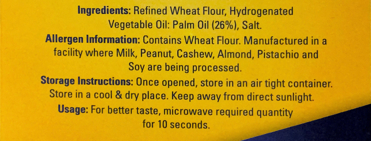 Crispy yet soft, these jeera puff pastries make tea time more enjoyable. Very popular in India, these large laired jeera biscuits are ideal for coffee/tea time. Made from whole wheat flour and spices. This product is the cumin flavour variety.