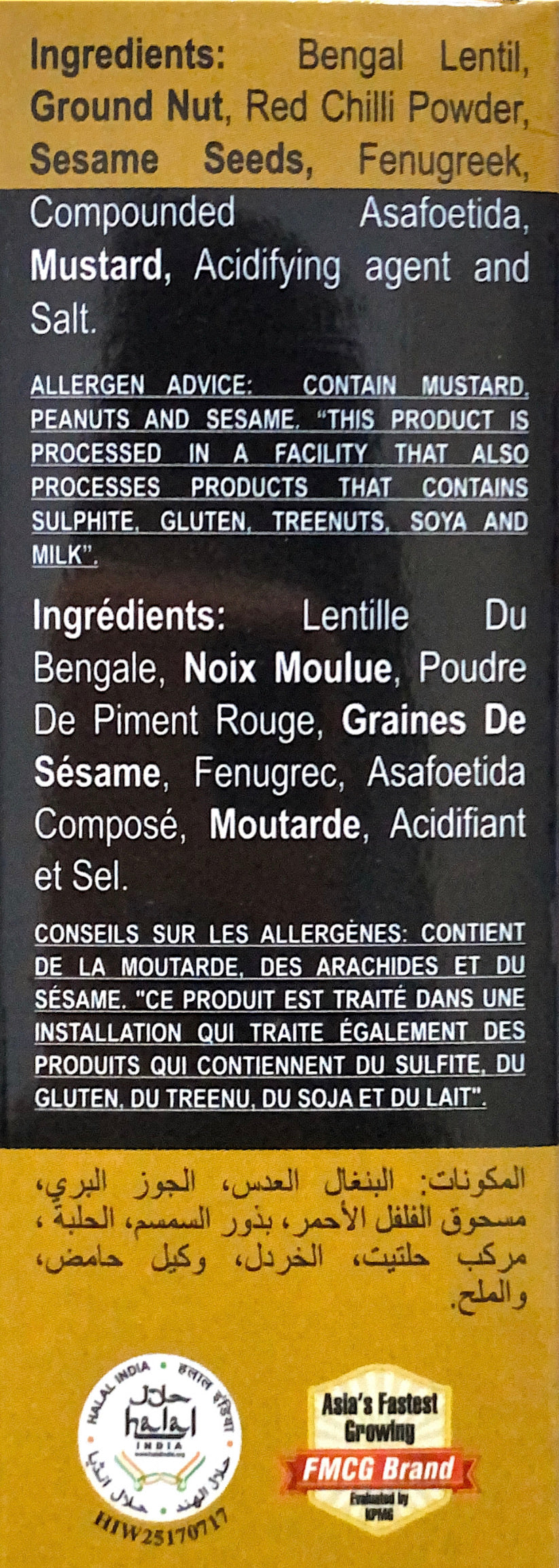 Recipe: Boil 500g of rice. Fry mustard onion, black gram dhal,red chillies, curry leaves in cooking oil. Add boiled rice, required Aachi tamarind rice powder and mix well. Now tasty tamarin rice is ready to serve. For more taste, keep aside for 1 hour and serve. Ingredients: Tamarin, Groundnut, Gram dhal, Chilli, Black gram dhal, Till seeds, Fenugreek,alt and refinded Compounded Asafoetida, Mustard, Lemon salt, Salt and Refined groundnut oil. Contains Nuts, Sesame and Mustard.