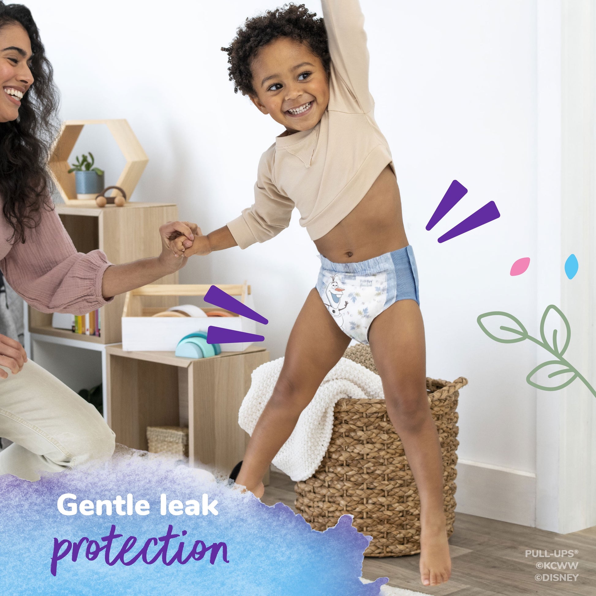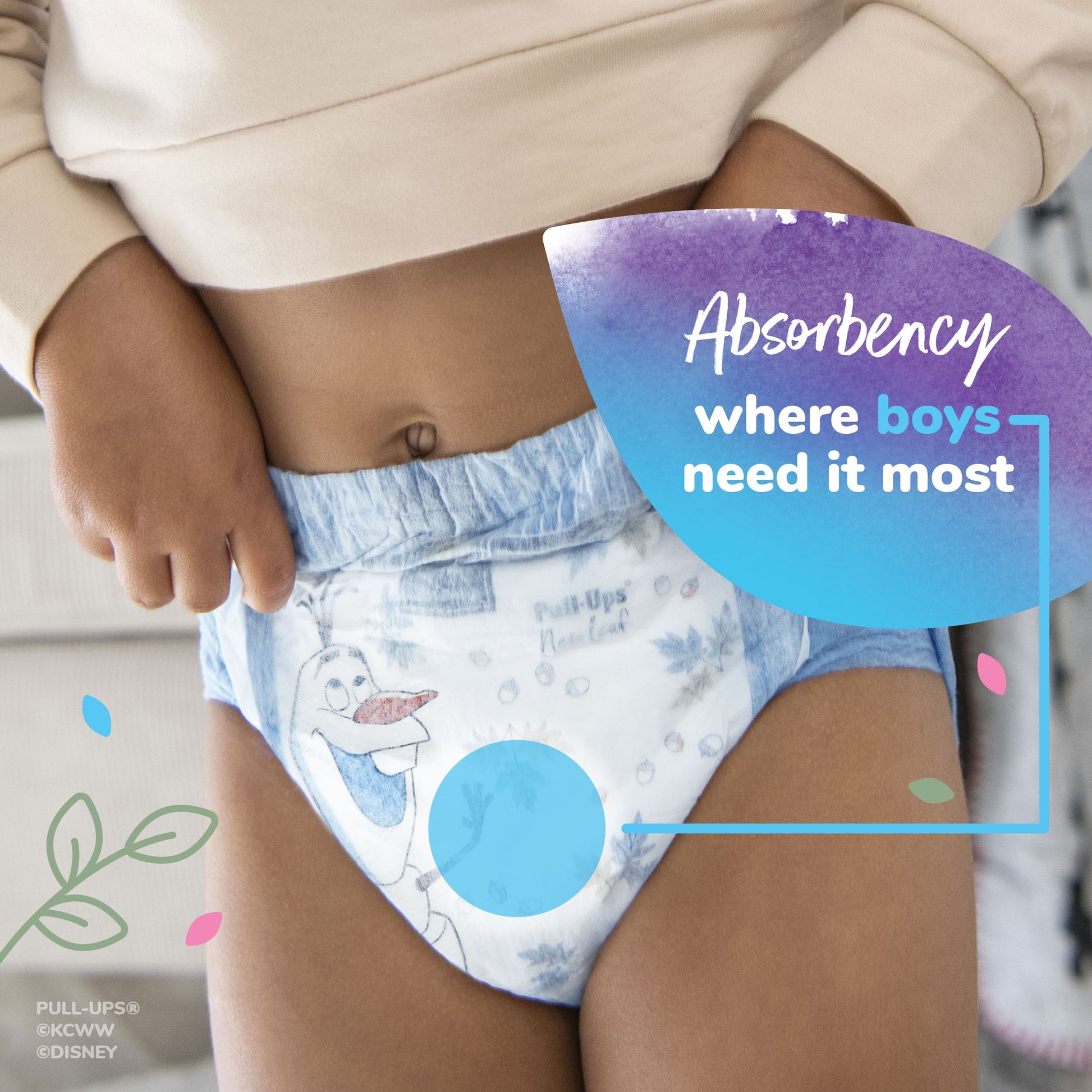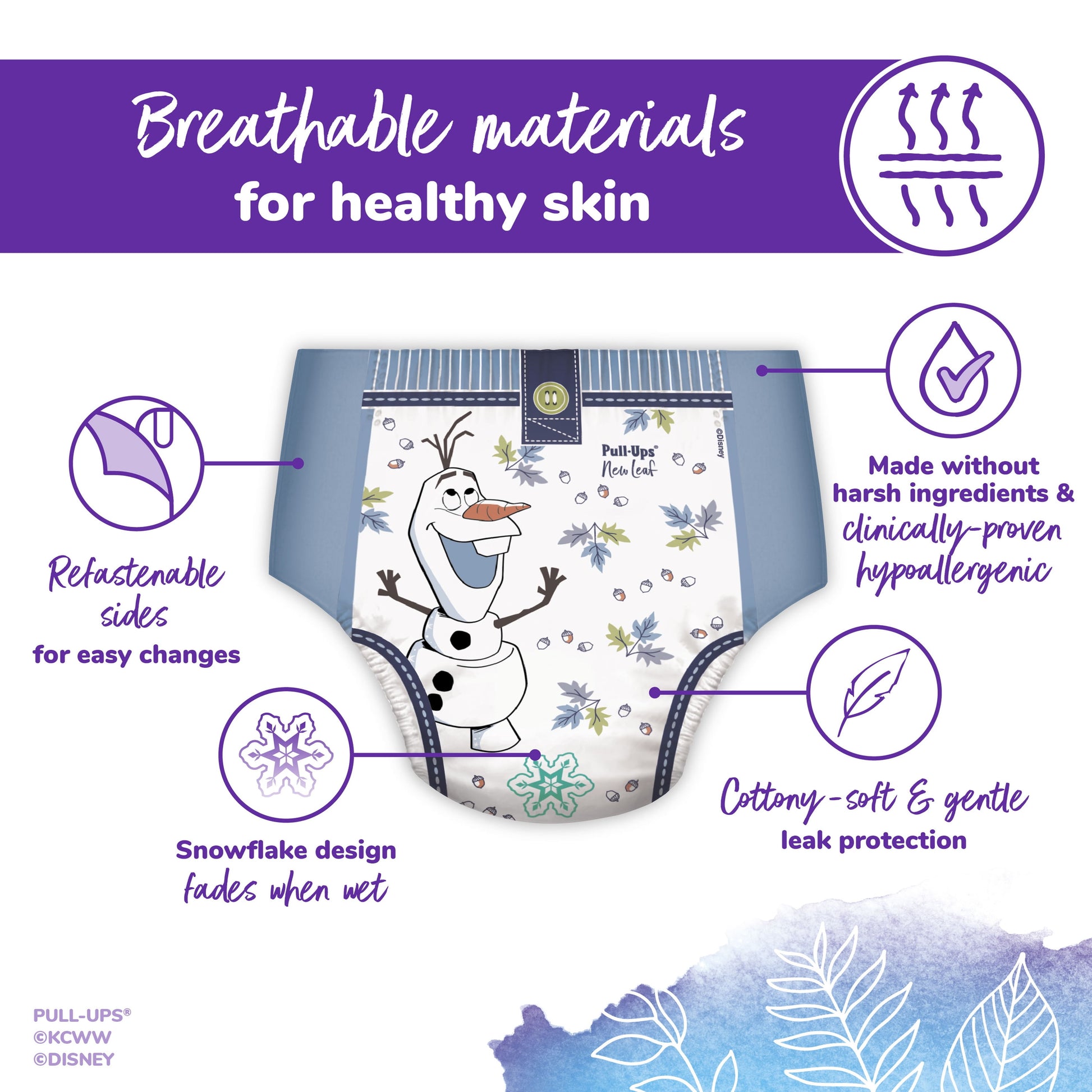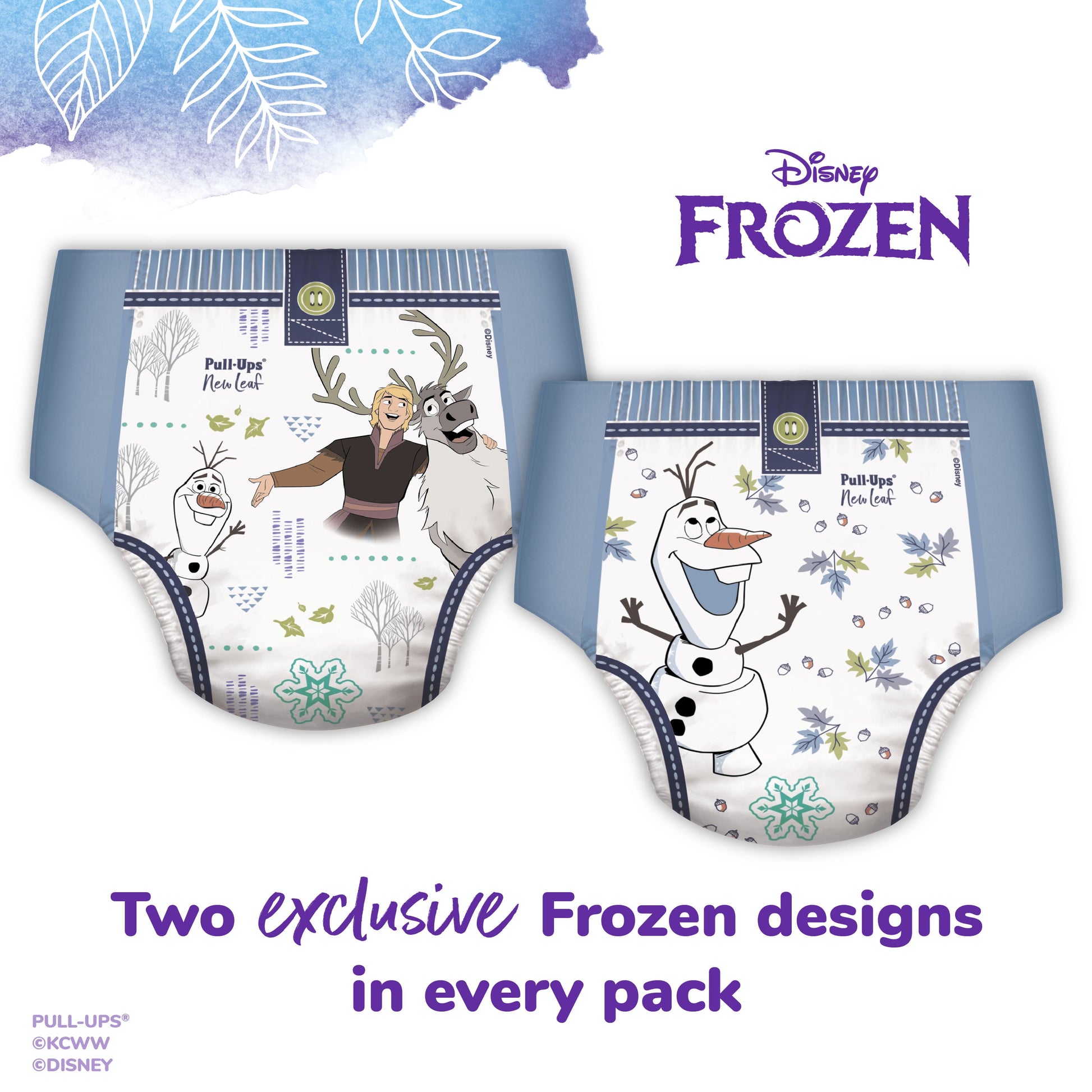 Only Pull-Ups New Leaf has Disney Frozen graphics that fade when wet, teaching Big Kids to stay dry