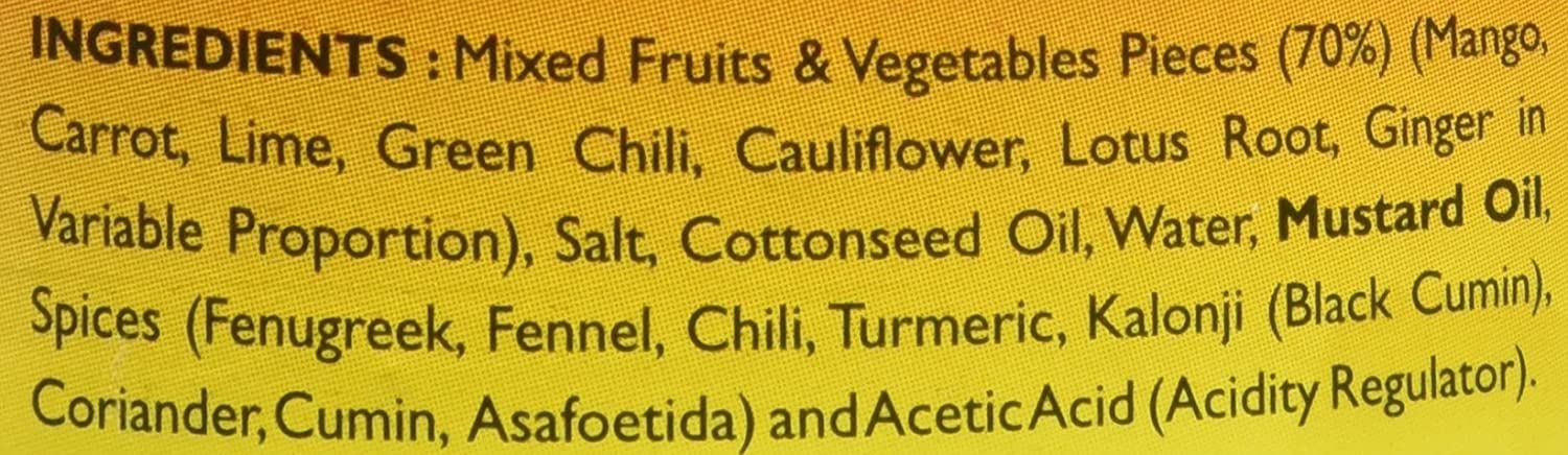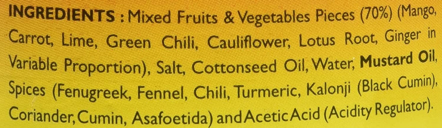 This particular Punjabi Panchranga Pickle is made up of Mixed vegetable pieces (Mango, carrot, lime, Green chili, cauliflower, lotus root, Karonda, ginger &/or Other seasonal vegetables). Introduce your family to delectable Punjabi achar.