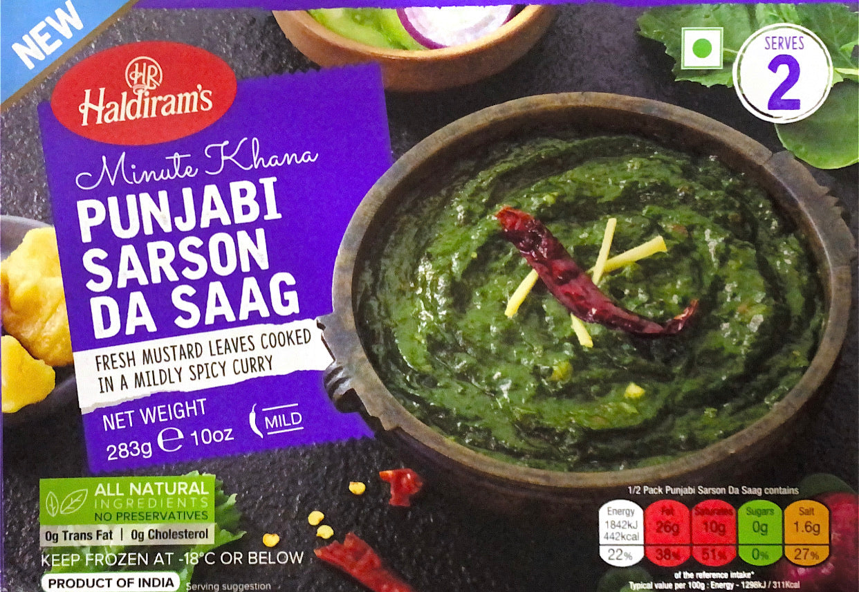 Sarson Ka Saag is a popular vegetarian dish from the northern region of the Indian subcontinent. It is made from mustard greens and spices such as ginger and garlic. It is often served with makki ki roti. Sarson Ka Saag and makki ki roti is considered a special dish in entire North India.
