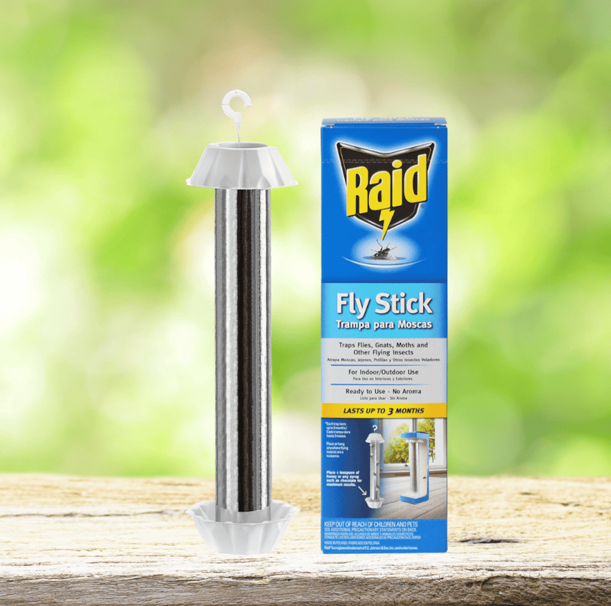 Are flying insects invading your home? Protect your home with the Raid Fly Sticks. These fly traps are the tool you need to gain control over pesky flying insects. Raid Fly Sticks are an effective way to control common houseflies, moths, horse flies, and other flying insects indoors and outdoors. This indoor and outdoor flying insect killer attracts flies with its silver metallic design. Simply add 1 teaspoon of honey or any syrup such as chocolate to the bottom cup for maximum results. Once they land on the stick, they never leave leading to their death. These ready-to-use Fly Stick can be hung in any room of the house; inside garages, barns, and outbuildings because it gives off no aroma. The Raid Fly stick lasts up to 3 months or when the stick is full. Coming with 2 fly sticks, this fly control for homes and outdoor spaces is a must-have product.