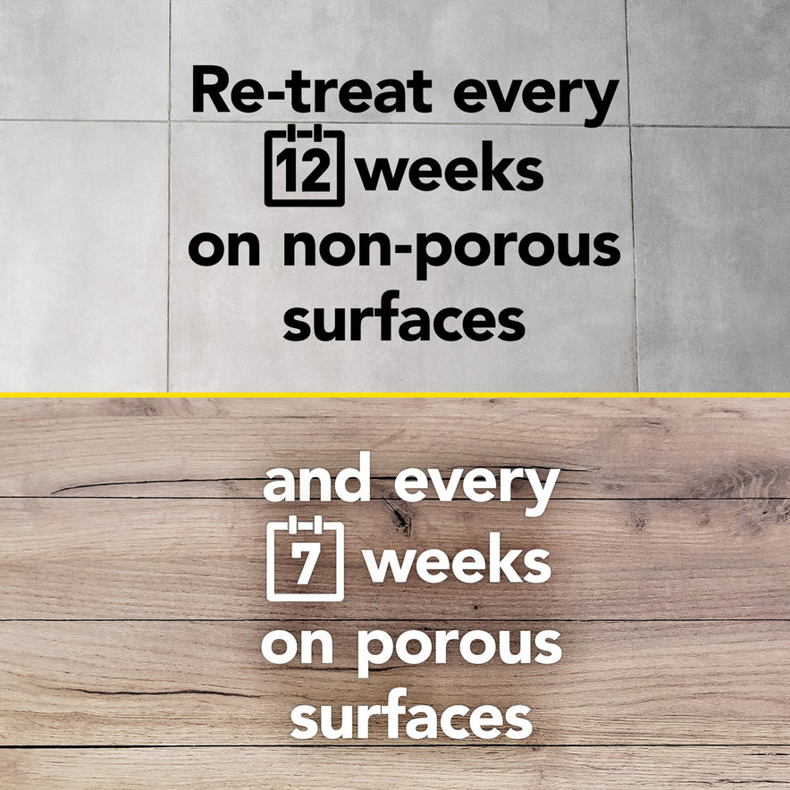 Re-treat porous surfaces every 7 weeks to maintain bug control
