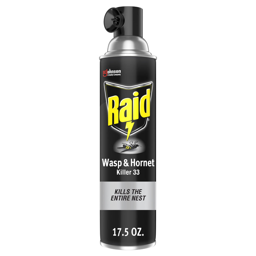Remove wasp nests and target a wide range of flying, stinging insects with Raid Wasp & Hornet Killer 33. Just shake well and spray this yellow jacket killer directly on the nest in the morning or early evening to saturate and destroy the entire population effectively.Raid Wasp & Hornet insecticide spray kills hornets, mud daubers, wasps and yellow jackets on contact and is electrically non-conducting up to 32,500 volts. This flying insect killer sprays up to 22 feet, allowing you to spray from a safe distance and is effective in killing the entire nest.