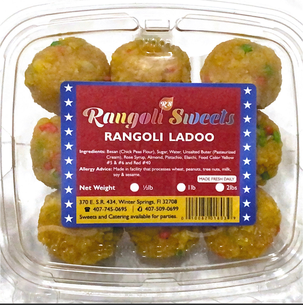 Boondi laddu or bundiar laddu is made from bengal gram flour (besan) based boondi. It is often served on festivals such as Raksha Bandhan and Diwali. Rangoli laddu is made from fine boondi where the balls are tiny and are cooked with ghee or oil.