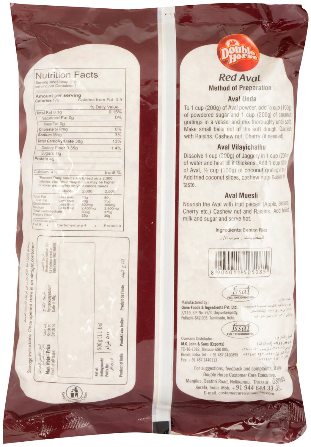 Double Horse Red Rice Flakes (Red Aval) 500g Double Horse brand red aval from the house of Manjilas Food Tech Pvt Ltd. Can be used as evening snacks. It is consumed either raw or cooked. Once opened store in an air tight container.