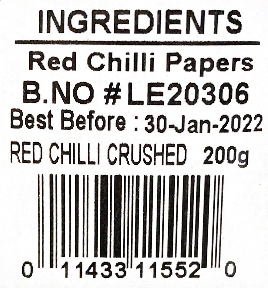 Deep Red Chilli Crushed 200g