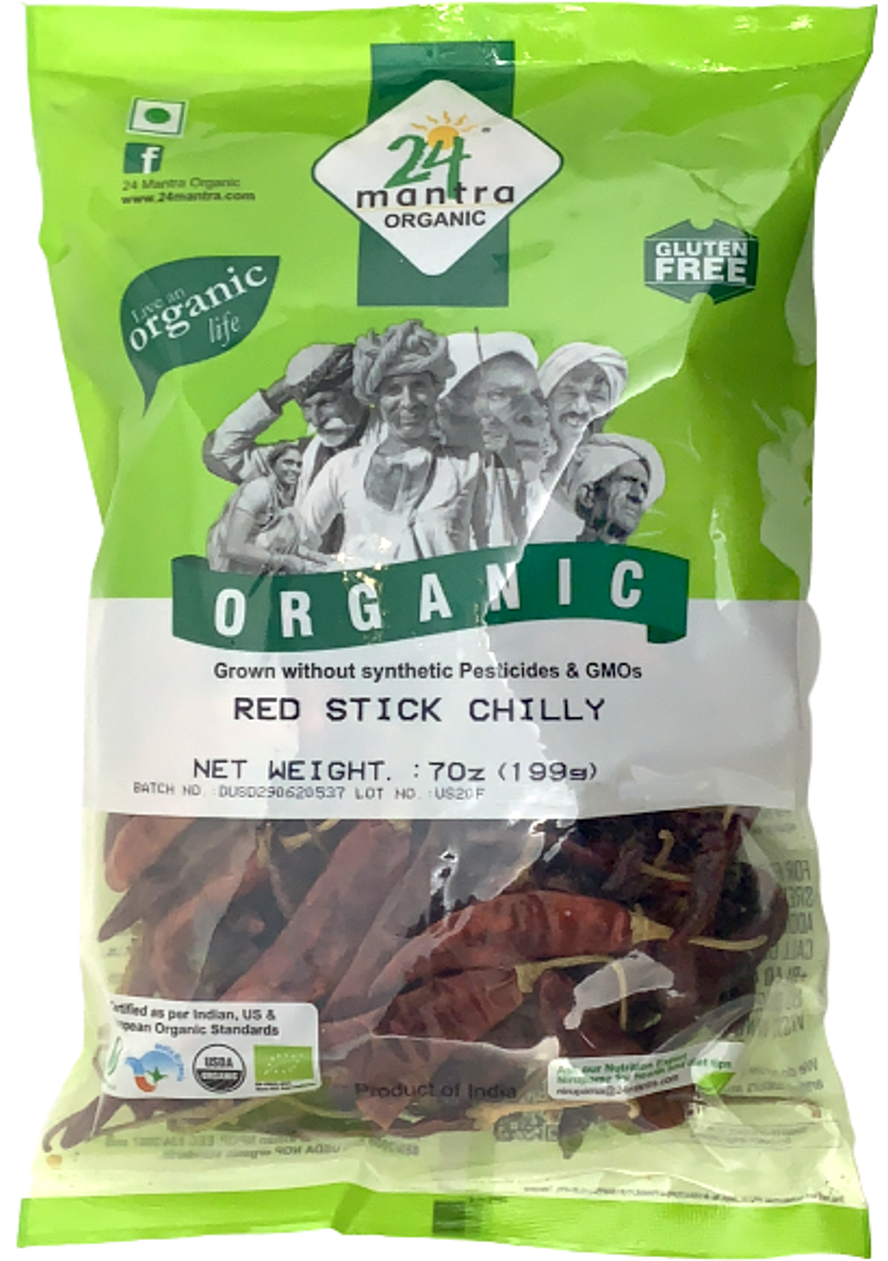 These beautiful, red whole organic dried chillies are grown throughout South India by independent farmers. Their use in curries is absolutely necessary to most Indian cooks.These dried organic chillies can be used whole or split and added to dal curries, soups and vegetable curries. These chillies pungency can be reduced by soaking them in water before using or removing the seeds from inside the pod.