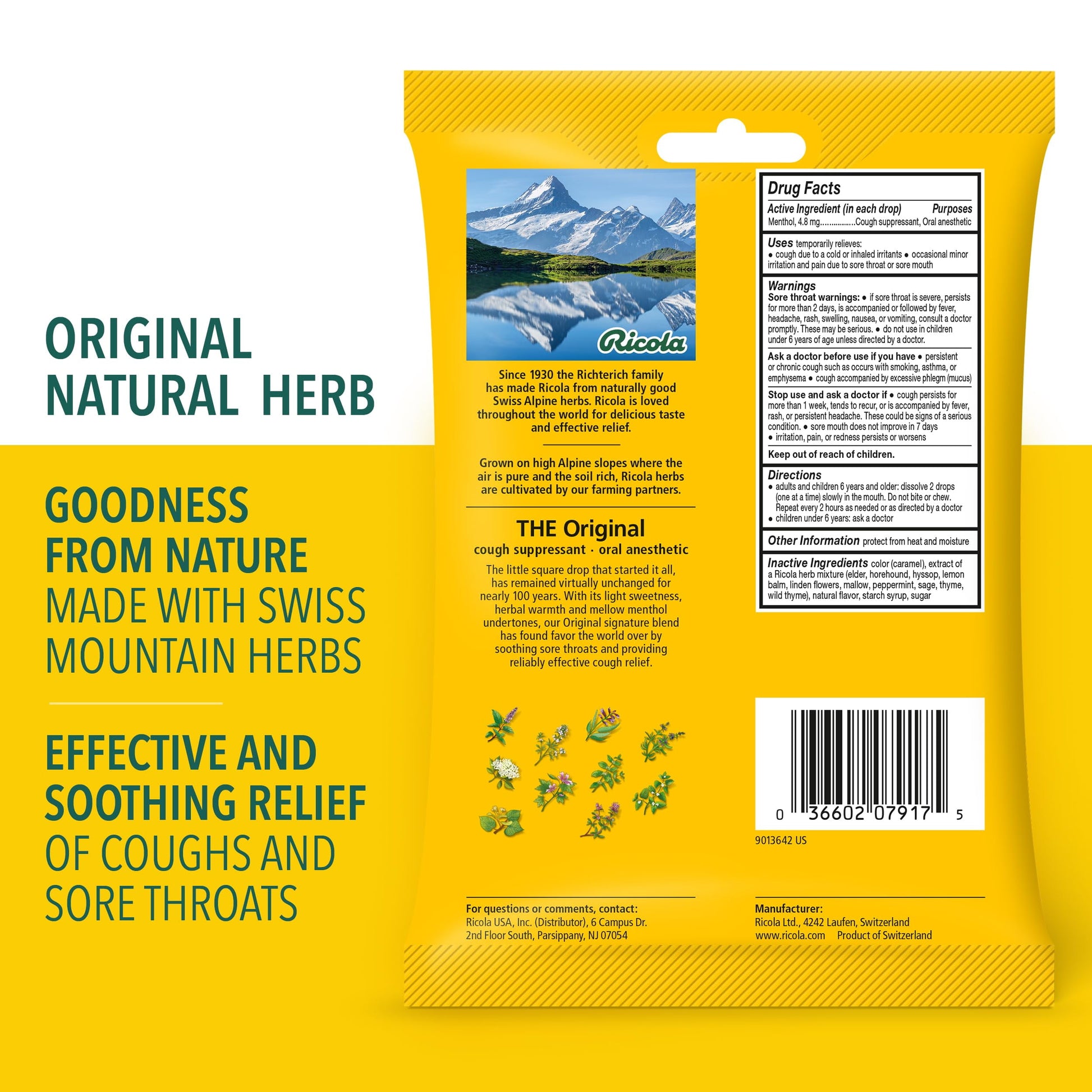 Ricola Original Herb Cough Drops, Soothing Relief for Dry, Sore Throat, Cough Suppressant & Oral Anesthetic