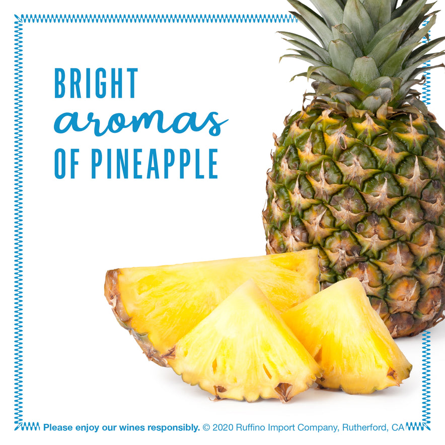 Ruffino wine with pineapple, meadow flower, pear, sage, and peach aromas plus golden apple, citrus, and pear flavors