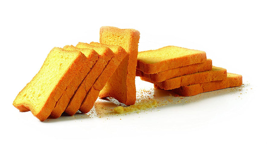 A rusk is a hard, dry biscuit or a twice-baked bread. It is sometimes used as a teether for babies. In some cultures, rusk is made of cake, rather than bread: this is sometimes referred to as cake rusk. In the UK, the name also refers to a wheat-based food additive.