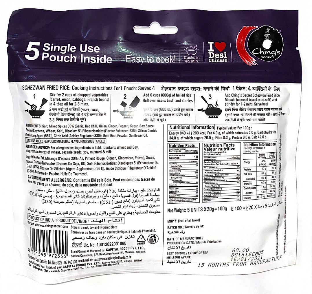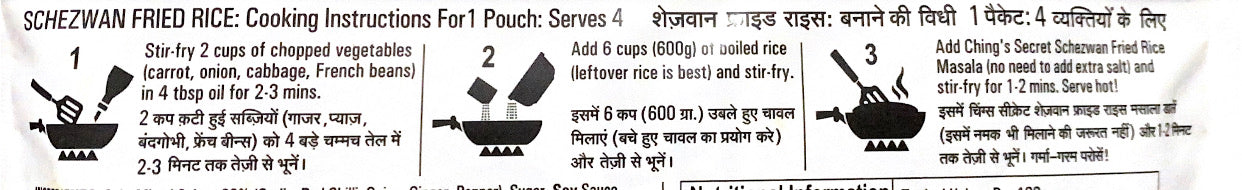Are you a fan of Desi Chinese masala delicacies? Now enjoy authentic Schezwan fried rice prepared with Ching's Secret Schezwan Fried Rice Masala. What’s more, this Chinese masala is easy to cook and requires no big effort. Use this fiery fried rice masala to relish your favourite Chinese rice dish every day at home.