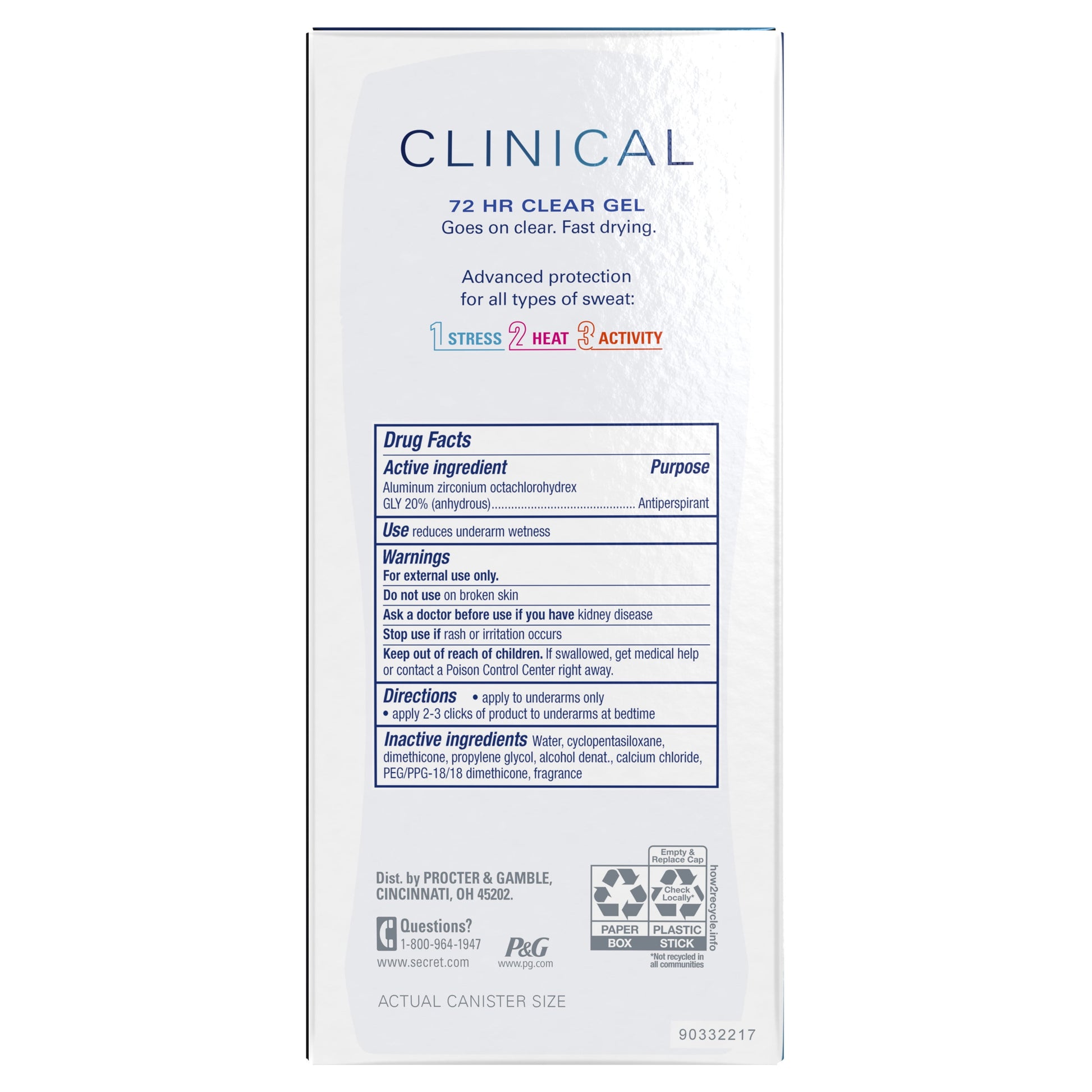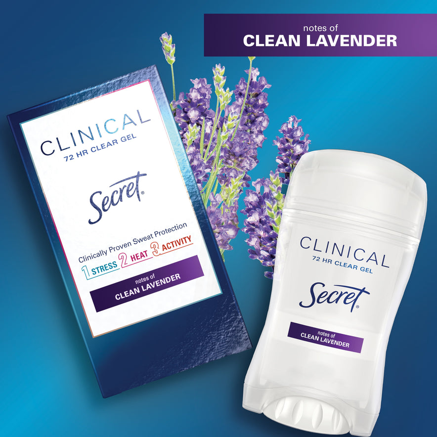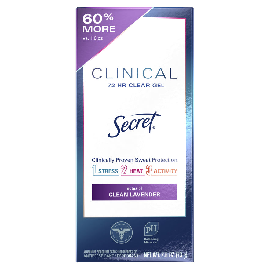 Never let them see you sweat! Secret Clinical Strength Antiperspirant and Deodorant for Women Clear Gel goes on clear. It's clinically proven protection for 3 types of sweat; 1) stress sweat, 2) heat sweat and 3) activity sweat. Secret Clinical Strength Antiperspirant and Deodorant for Women offers the wetness protection of a prescription-strength product that is gentle on skin, making it perfect for everyday use. Secret Clinical Strength Clear Gel-advanced protection to take on even the most stressful days. Also available in invisible solid and soft solid.