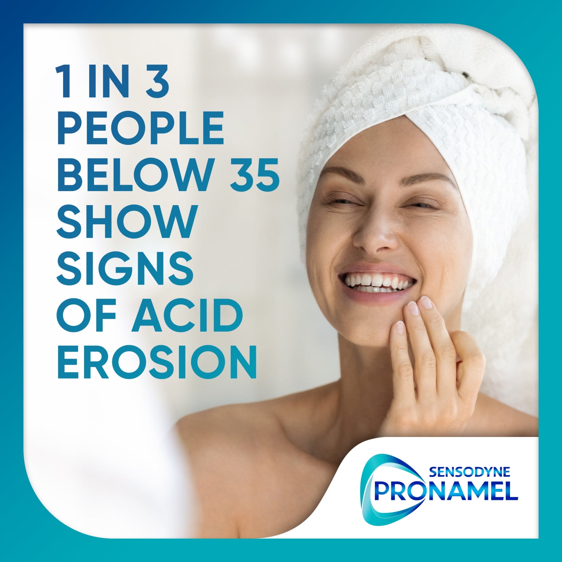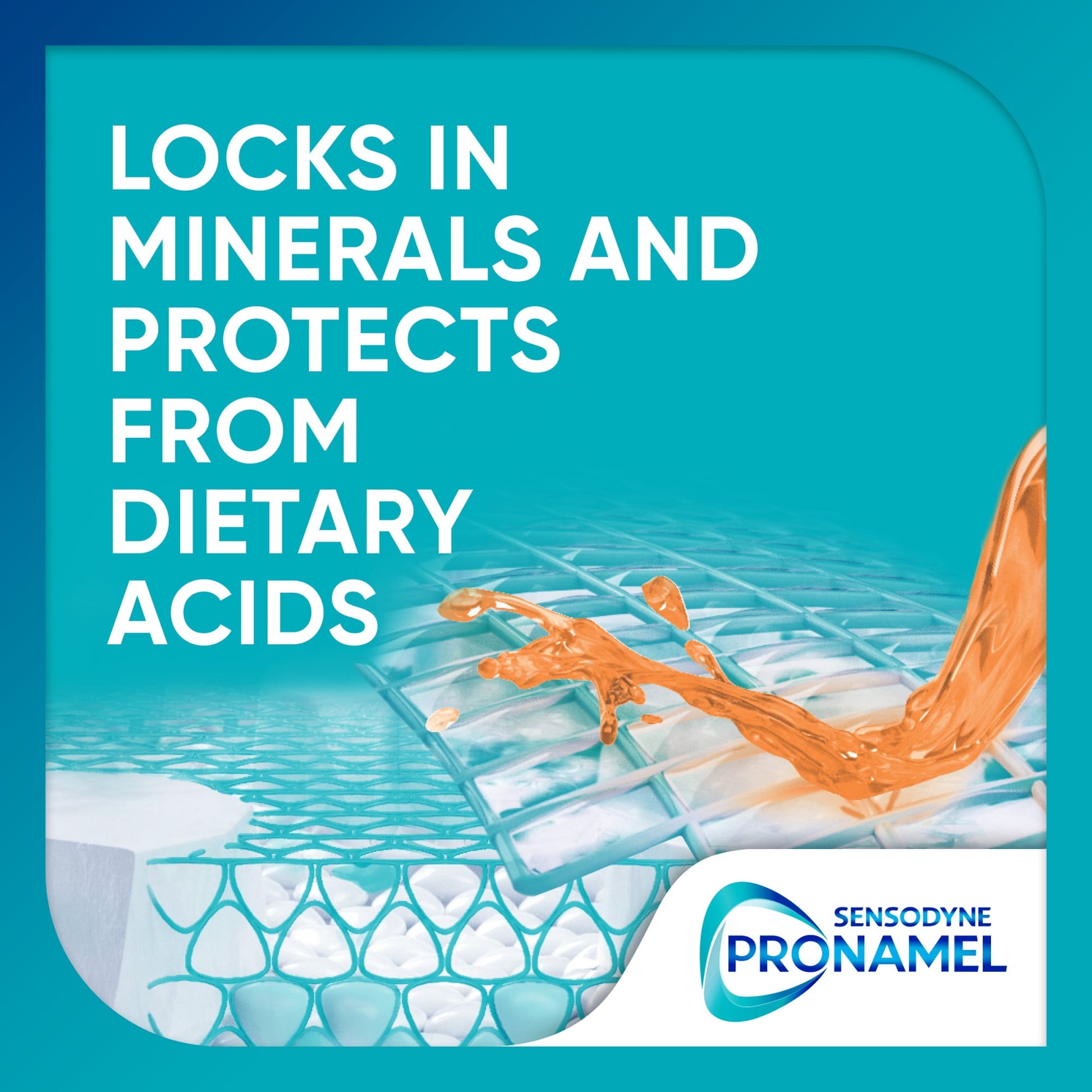 Sensodyne Pronamel Intensive Enamel Repair Toothpaste for Sensitive Teeth is Pronamel’s most advanced enamel care formulation, to help actively repair acid-weakened enamel and protect teeth from acid erosion. This enamel strengthening toothpaste helps minerals penetrate deep into the enamel surface to repair microdamage, then rebuild and reharden enamel for strong, healthy teeth. Sensodyne Pronamel toothpaste is made with potassium nitrate and sodium fluoride, protecting you against cavities and acid erosion caused by exposure to everyday acidic foods or stomach acid. Brush for two minutes twice daily with this Extra Fresh toothpaste to protect your teeth from pain triggers, providing ongoing sensitivity protection and relief, with a refreshing taste for extra fresh breath. Build a stronger foundation with Pronamel, so your teeth can look and feel their best.
