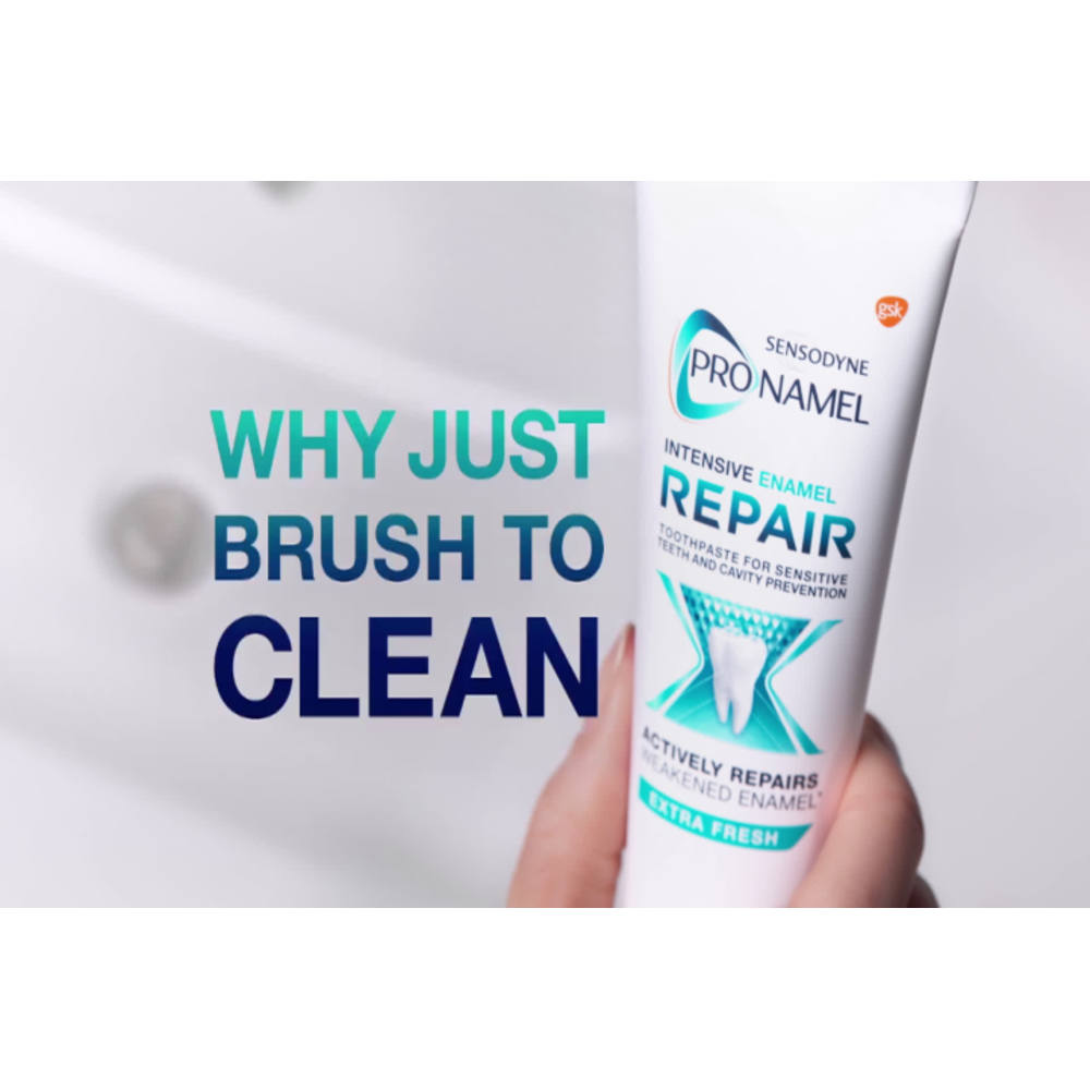 Sensodyne Pronamel Intensive Enamel Repair Toothpaste for Sensitive Teeth and Cavity Protection features an advanced enamel care formulation proven to help actively repair acid-weakened enamel and protect teeth from future acid erosion (2). Many of the foods and drinks you enjoy contain acids that can wear away the hard enamel coating of your teeth. Developed with potassium nitrate and sodium fluoride, this sensitive toothpaste strengthens and rehardens weakened enamel and provides lasting relief (2) from sensitivity. Whether it’s a sharp shock or a twinge of pain from hot or cold drinks and food, Sensodyne Pronamel toothpaste makes it easier to manage your sensitive teeth. This superior strengthening of enamel also helps prevent cavities and freshen your breath with an extra fresh taste, leaving your mouth feeling clean. The convenient two-pack keeps you stocked with enamel toothpaste. For sensitivity protection, apply this enamel protection toothpaste in a 1-inch strip on your toothbrush, and brush twice a day every day. Get lasting protection from tooth sensitivity with Sensodyne Pronamel.