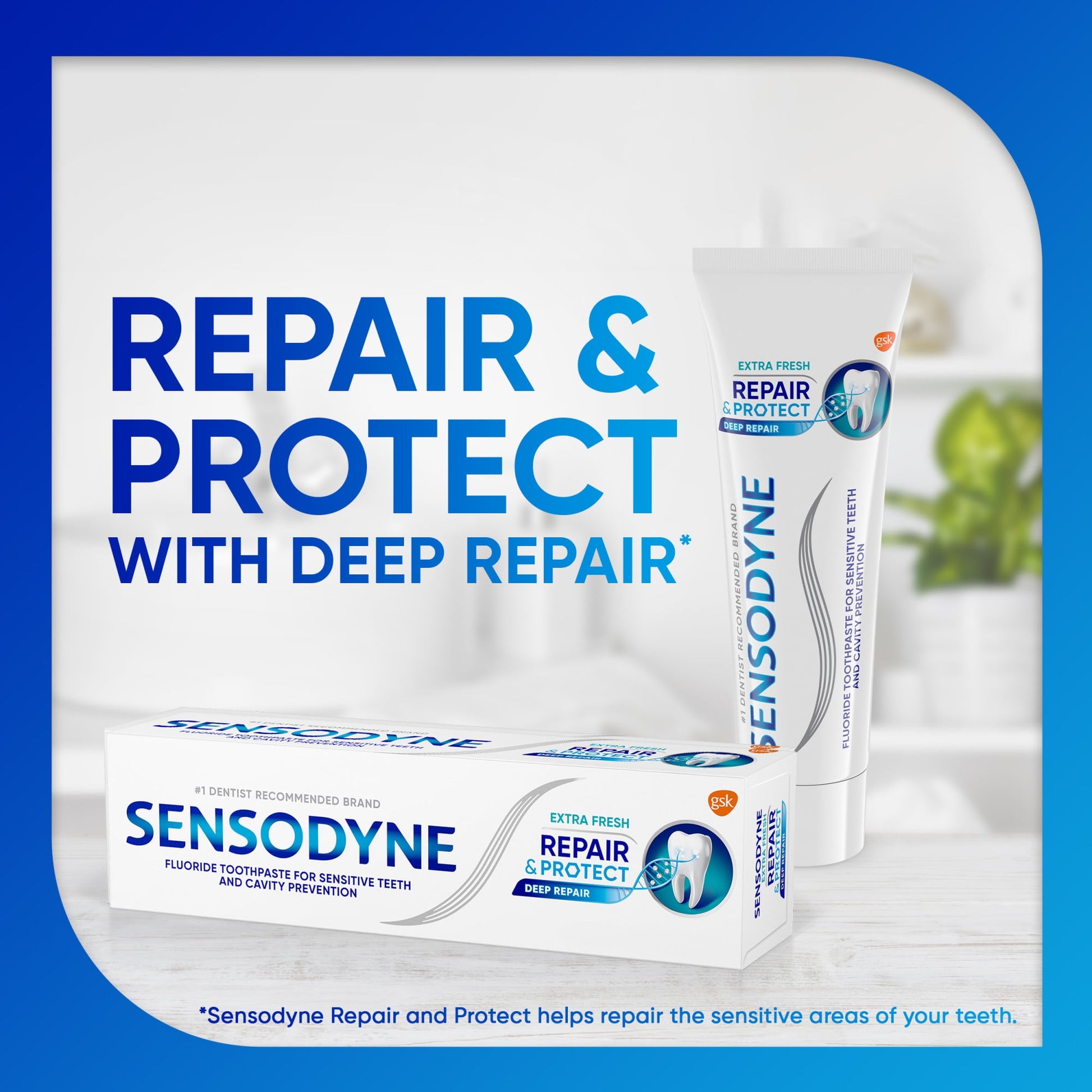 Sensodyne Repair and Protect is a daily fluoride toothpaste that is clinically proven to provide relief from sensitivity and deliver long-lasting sensitivity protection with twice daily brushing. This sensitivity toothpaste is formulated with stannous fluoride, and creates a robust reparative layer to help relieve pain and sensitivity. Sensodyne toothpaste delivers 24/7 sensitivity protection when used as directed. Just like regular fluoride toothpaste, Sensodyne toothpaste also helps whiten teeth and promote healthy gums, while the mint flavor leaves your mouth feeling fresh and clean. Brush with Sensodyne Repair and Protect Extra Fresh toothpaste for sensitive teeth twice but not more than three times, every day. Try to minimize swallowing and spit out. Make sure to close the cap. Enjoy round the clock sensitivity protection with Sensodyne sensitive toothpaste.
