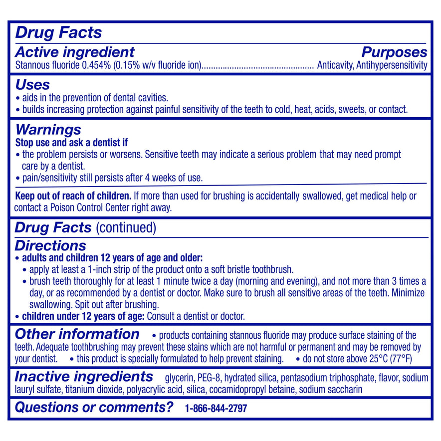 • Stannous fluoride formula provides protection against sensitivity with twice daily brushing so you can enjoy life without the worry of sensitivity (1)