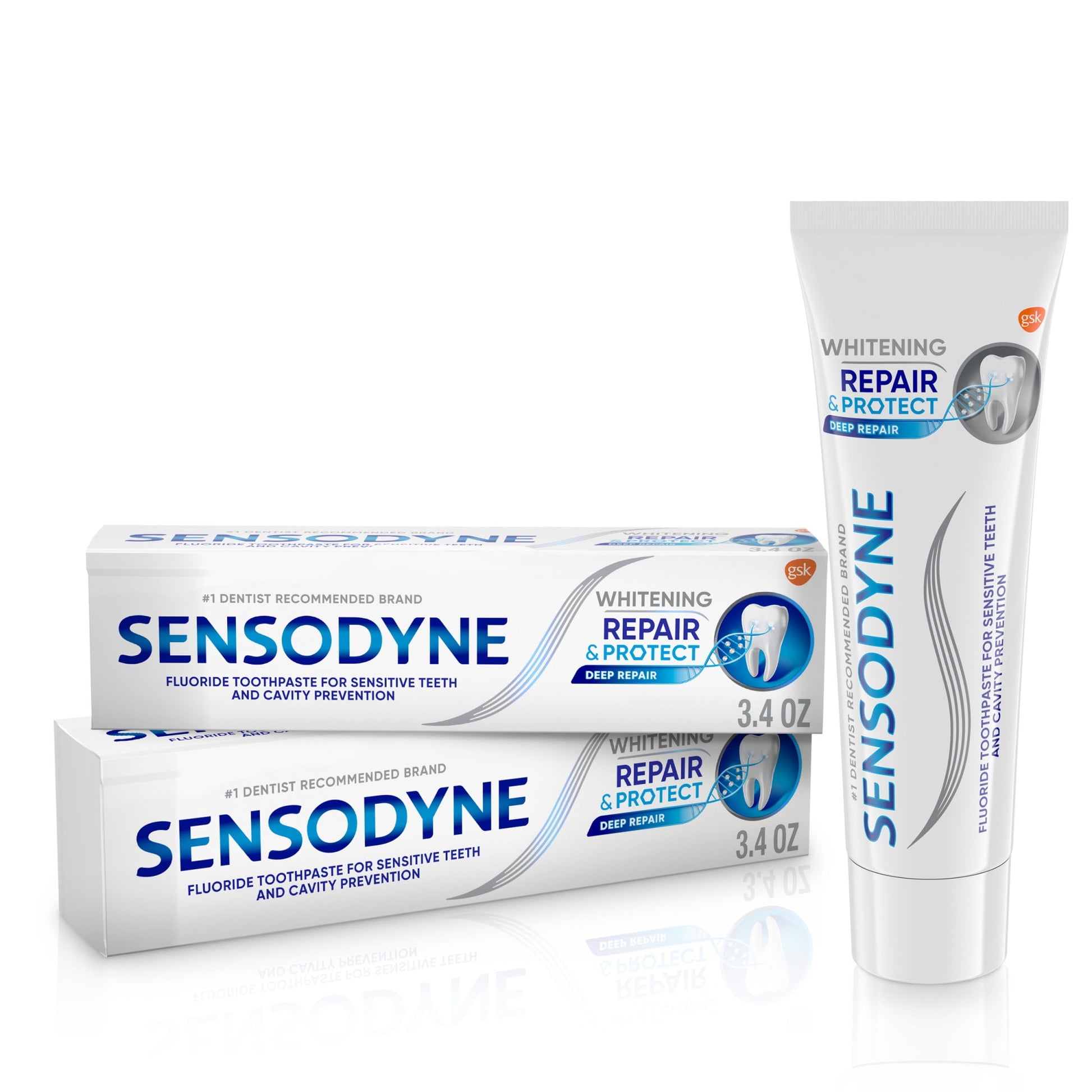 Sensodyne Repair and Protect Whitening is a daily whitening fluoride toothpaste that has a clinically proven ingredient to provide relief from sensitivity and deliver lasting sensitivity protection with twice daily brushing. This whitening toothpaste is formulated with stannous fluoride, and creates a reparative (2) layer to help relieve tooth sensitivity (1). Sensodyne Repair and Protect toothpaste also helps whiten teeth while freshening your breath. Brush with Sensodyne Repair and Protect toothpaste for sensitive teeth and cavity prevention twice but not more than three times, every day. Try to minimize swallowing and spit out. Make sure to close the cap.