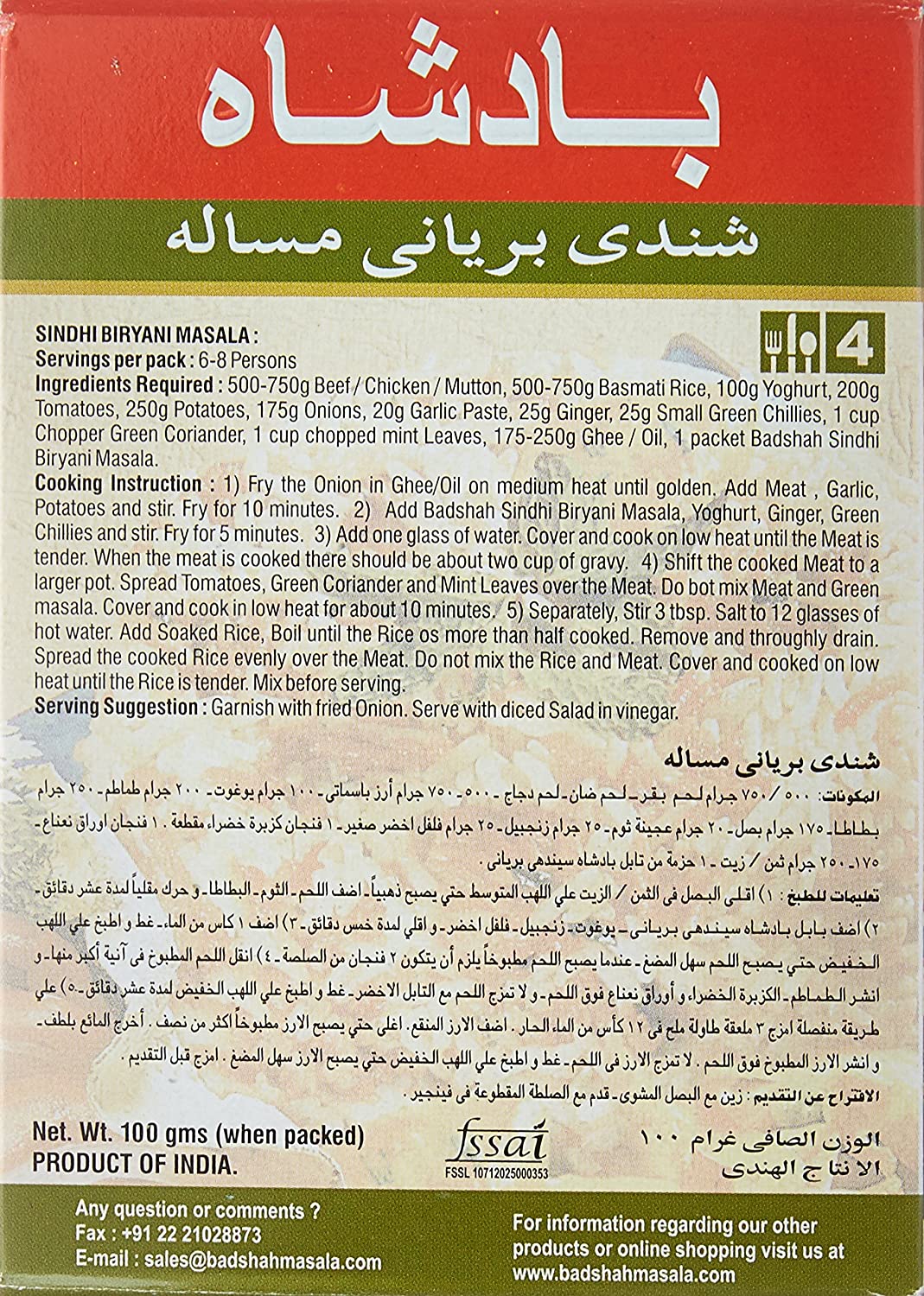 Badshah Sindhi Biryani Masala is a rich and hearty rice dish that can be made with beef, chicken or lamb. It is traditionally made with Basmati Rice, yogurt, vegetables like potatoes and onions and green chilies.