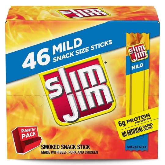 Contains one 46-count box of individually wrapped, 0.28-ounce Slim Jim Mild Flavor Smoked Meat Snack Sticks