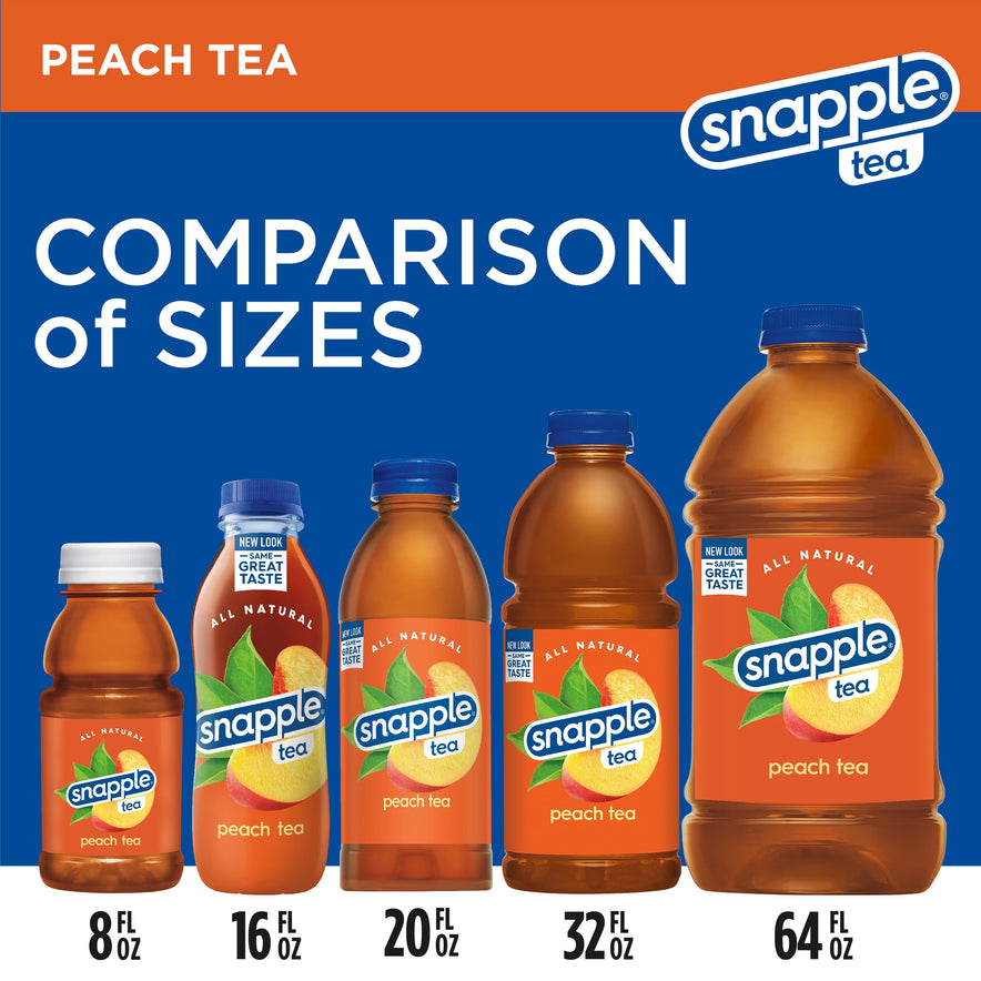 To peach their own, but we think Snapple Peach tea is perfectly peachy. Snapple Peach Tea is made from the finest blend of black and green tea leaves and our classic peach flavor. Do yourself a flavor! Snapple Peach Tea is all natural, gluten-free, made from black and green tea, and contains no artificial flavors or sweeteners. Even better, our 16oz and 20oz bottles are recyclable and made from 100% recycled plastic, excluding the cap and label. Snapple always brings the flavor. That's what we have been doing ever since we were a small brand created by three friends in the New York area. We started out by selling our apple juice to health clubs in 1973. Since then, we have expanded our flavor portfolio throughout the 80s into teas, fruit drinks, and lemonades. Snapple went national in the early 90s, and now you can find us in more than 30 flavors and in all 50 states across the country. And for an extra dose of fun, don't forget to check out our Snapple 'Real Facts' under our caps!