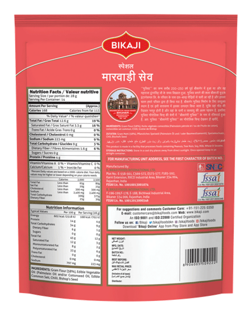 A 250 Years old Royal Delicacy, perfected over generations by the makers from Bikaner, in Bikaner, using ingredients sourced from and around Bikaner that makes Bikaneri Bhujia such special. A special Marwari version of Bhujia with the traditional flavour and style of the Marwar.