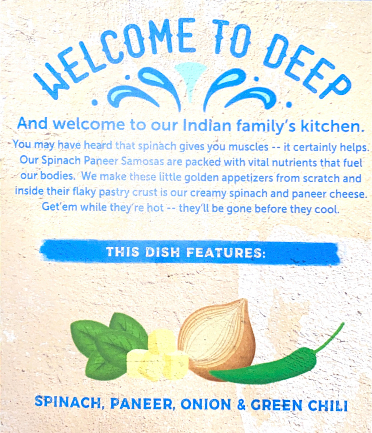 The Deep Spinach Paneer Samosas Frozen Snack Collection. Thanks to freezing technology, frozen foods are not only healthful, but may even be more nutrient-rich than fresh products. As mentioned, produce is generally flash frozen during peak ripeness, thus locking in and withholding their nutritional content. The principle can further hold true when frozen foods are compared to fresh produce that may lose their nutritional quality during prolonged transportation and storage at grocery stores. "Eating healthy is too expensive" is a common misconception or excuse when it comes to choosing more nutritious foods over convenience products. Although choosing organic sources may be take a harder beating on the wallet, frozen foods can ambiguously be waist and budget-friendly. Preserving foods also lessens the risk of throwing both food and money away.