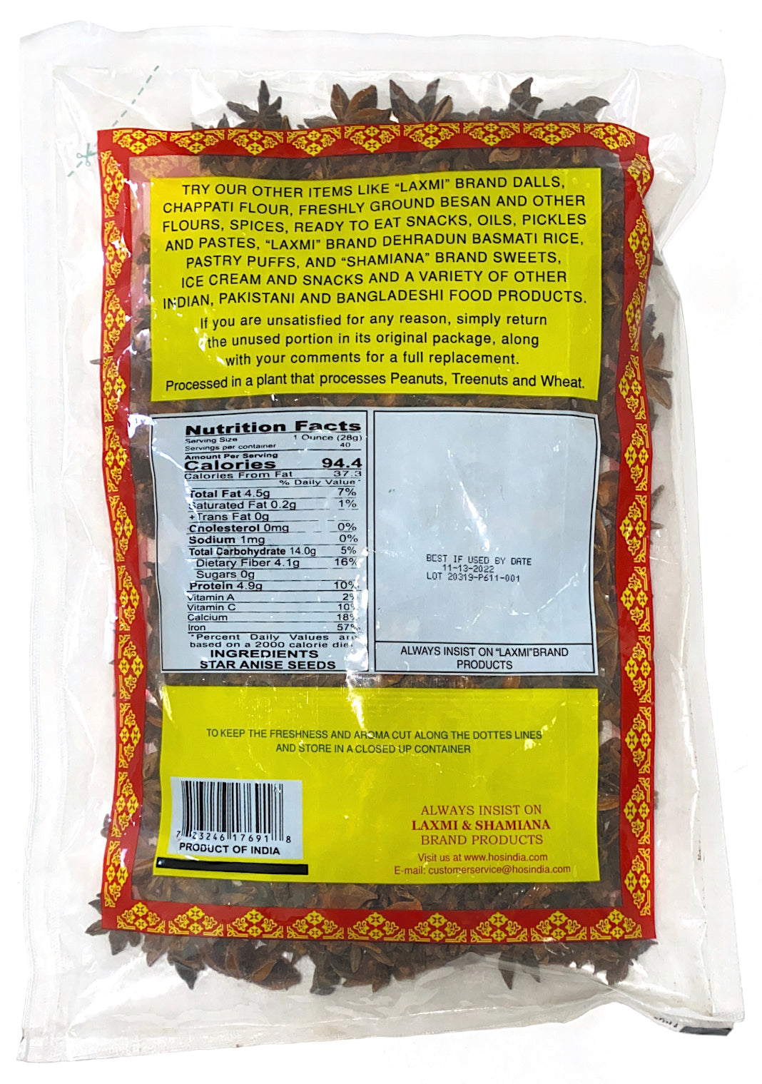 Laxmi Star Anise Seeds is a fragrant spice that is found in cuisine ranging from traditional Indian cooking to Chinese, Vietnamese, and Indonesian cuisines. Star Anise is often favored for it's ability to enhance to flavor of meats. Star Anise is an ingredient in the traditional five spice powder of Chinese cooking and is an all-natural and a delicious ingredient to soups, rice and mulled wines.