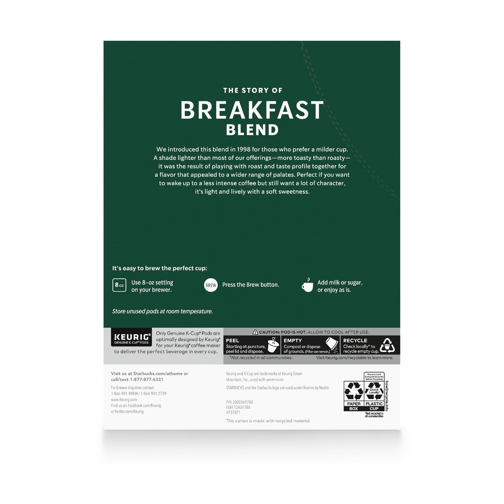 PREMIUM COFFEE IN A K-CUP—Starbucks delivers exceptional coffee cup after cup with this 22-count K-Cup pod box of Breakfast Blend medium roast coffee for Keurig brewers