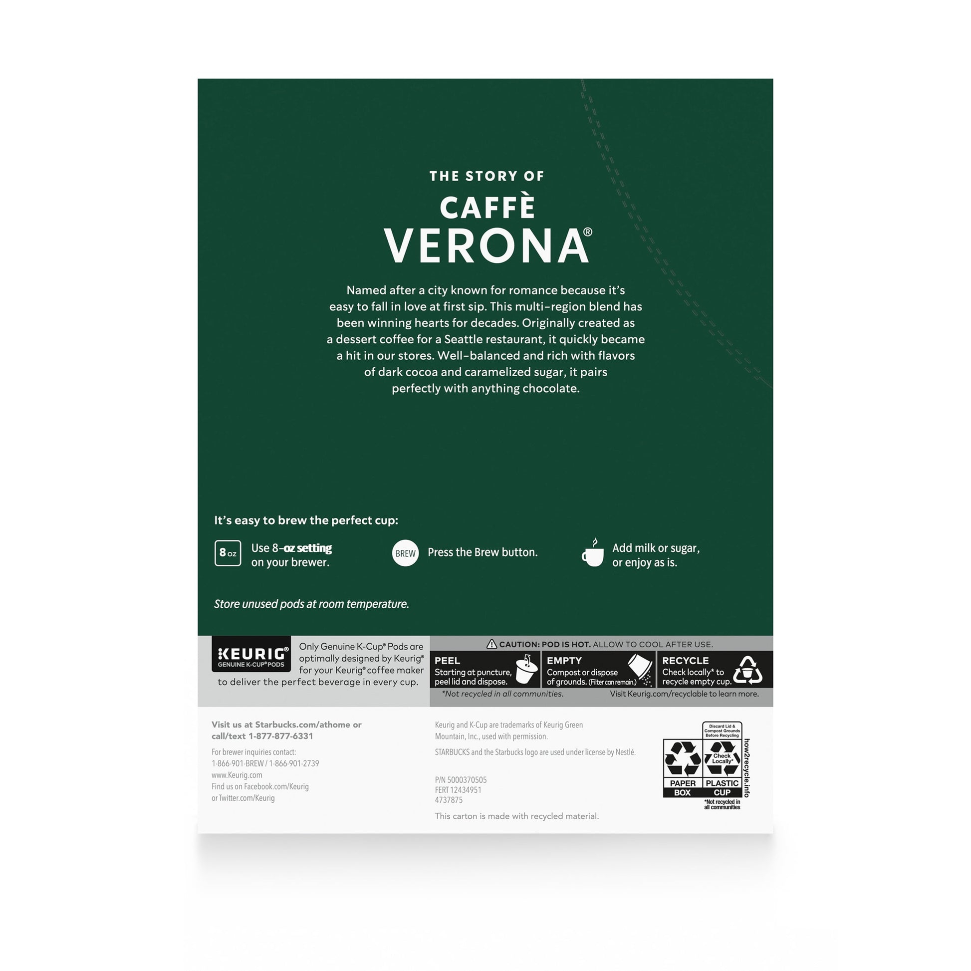 PREMIUM COFFEE IN A K-CUP: Starbucks delivers fresh tasting roasted coffee with this 22-count box of Caffè Verona dark roaste coffee K-Cup pods for Keurig coffee makers
