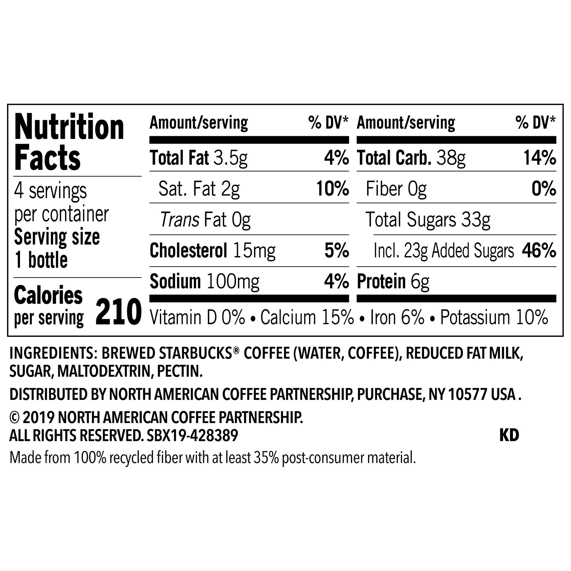 A creamy blend of coffee and lowfat milk – available on the go. We use only the finest, perfectly roasted Arabica beans, creating a rich coffee flavor like no other. In support of our continued efforts to reduce packaging material and improve recycling, we have removed the plastic overwrap from the neck of the bottle. The safety button on the cap should pop upon opening; if not, discard. A contemporary classic, our bottled Frappuccino® coffee drink varieties offers the bold, delicious taste of coffee with added flavors and real milk, blended together to create pure perfection. This lowfat indulgence is proof that you can enjoy a little Starbucks wherever you may be.