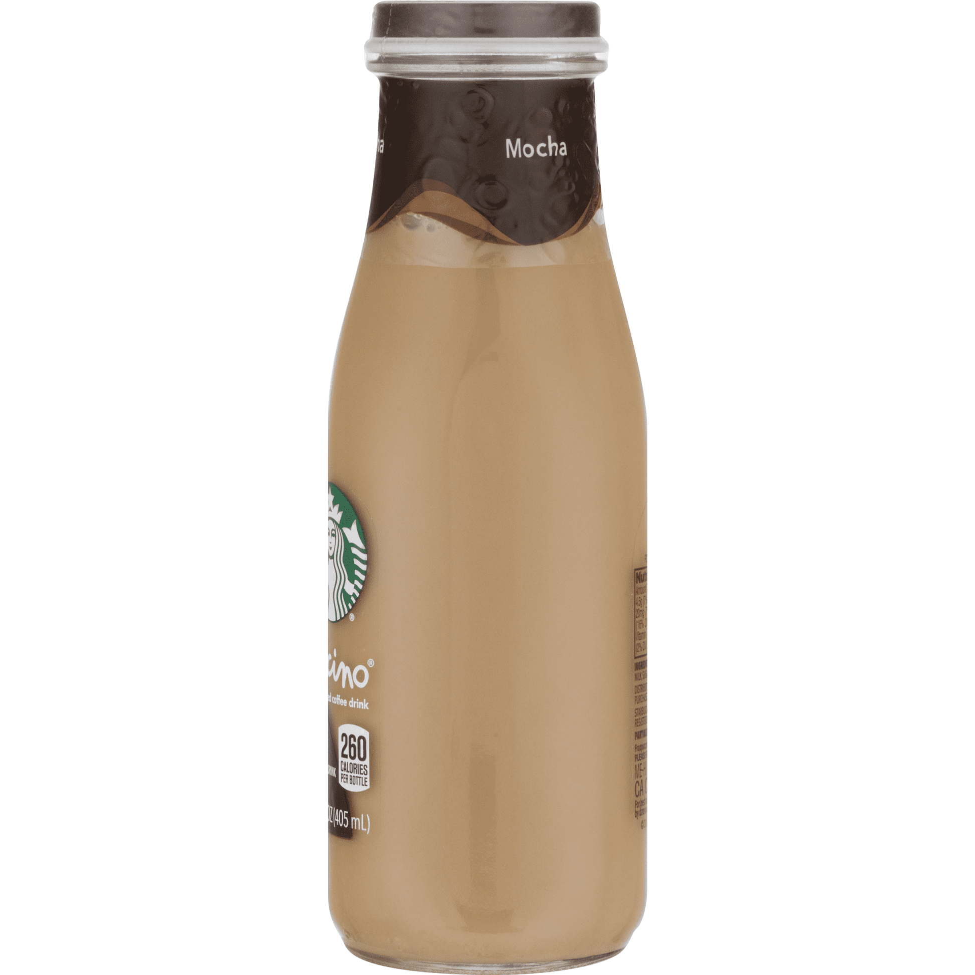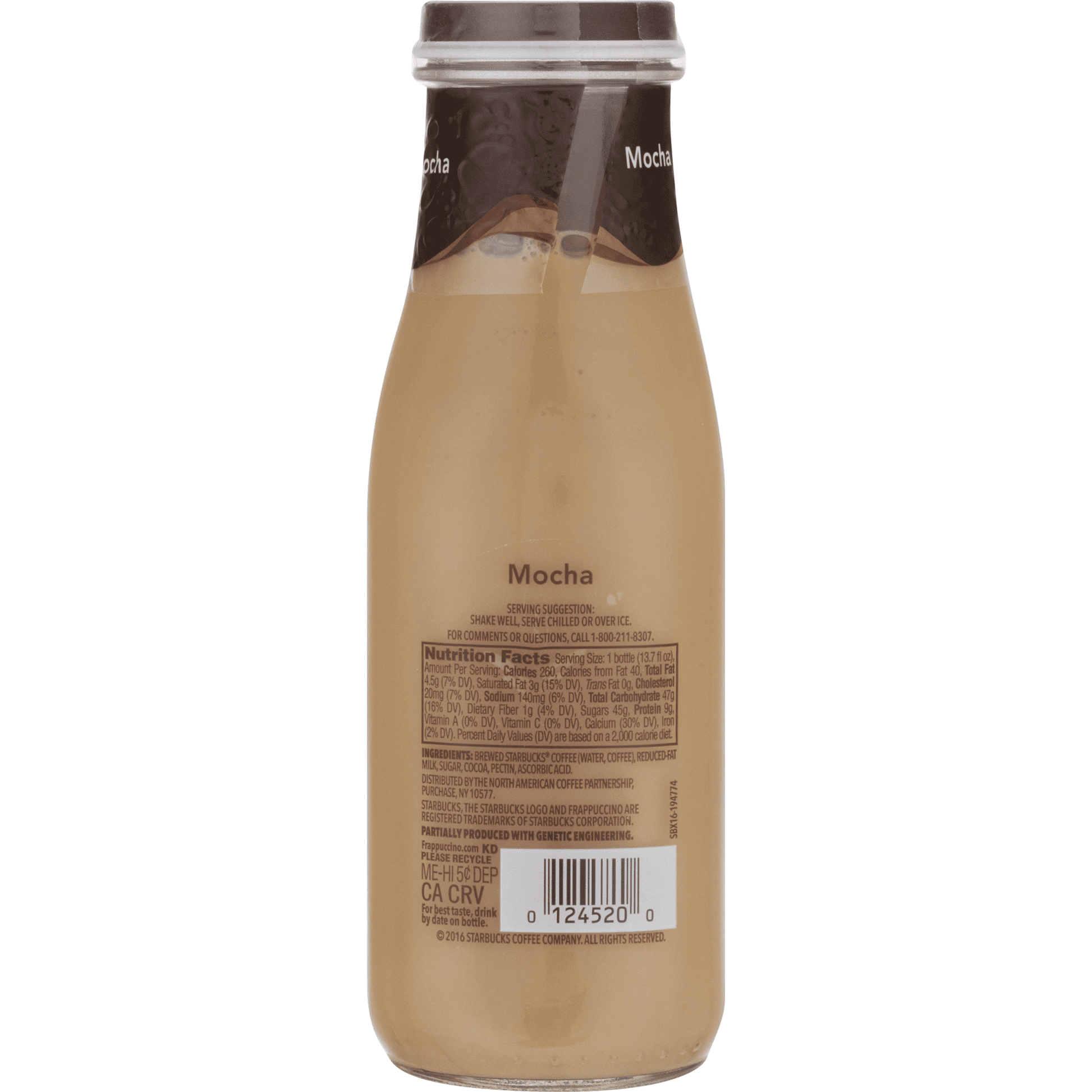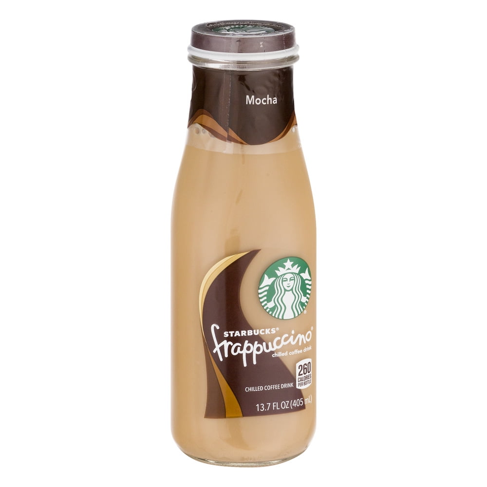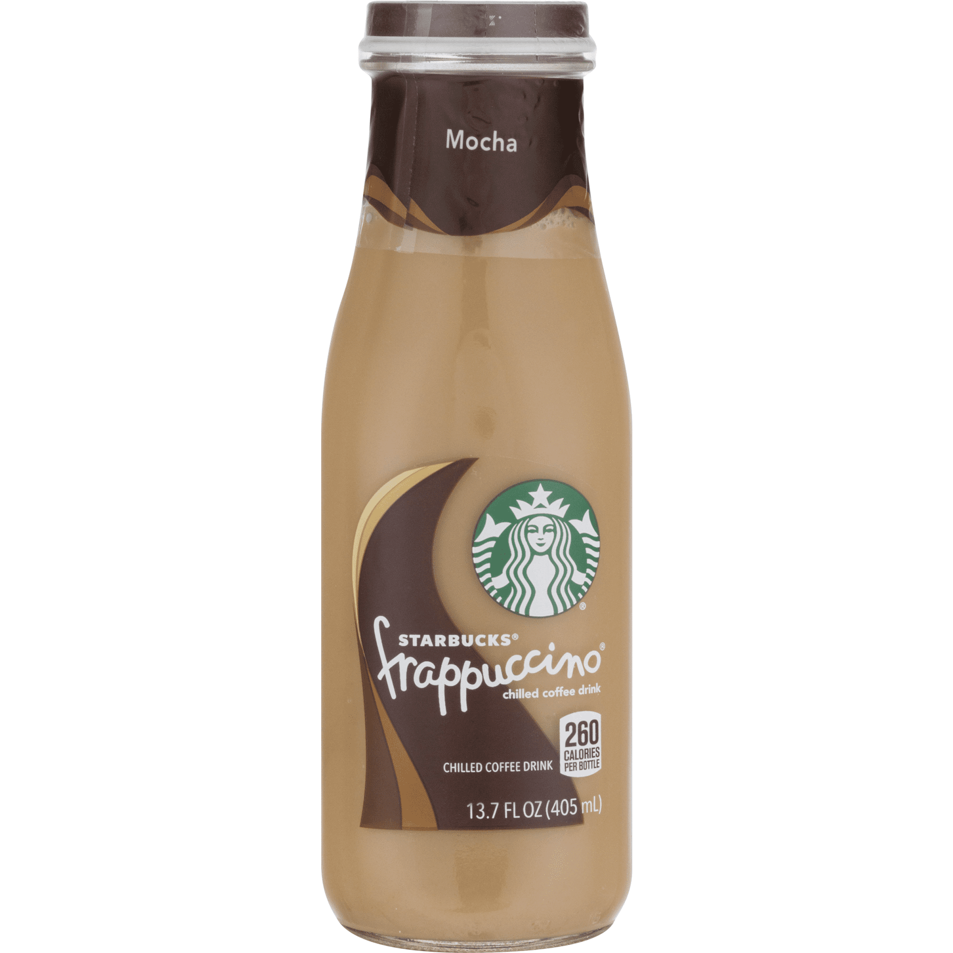 Starbucks Frappuccino Mocha Iced Coffee, Skip the store with Starbucks Frappuccino Chilled Coffee Drink. Starbucks have created some overwhelmingly popular coffee drinks over the years, including expertly-crafted Flat Whites, cold brews and decadent blended beverages. Starbucks Mocha Frappuccino is one of their perennial favorites, featuring a delicious blend of brewed Arabica coffee, reduced-fat milk and chocolaty mocha flavor. The Frappuccino has helped make Starbucks a household name, sending millions into their stores every day for a Frappucino fix. With Starbucks bottled Mocha Frappuccino, you can indulge in your favorite blend anywhere--at home, at work or even on the go. The perfect late afternoon pick-me-up, this creamy, cold coffee treat is great straight from the bottle or enjoyed over ice. Each bottle contains 13.7 oz.