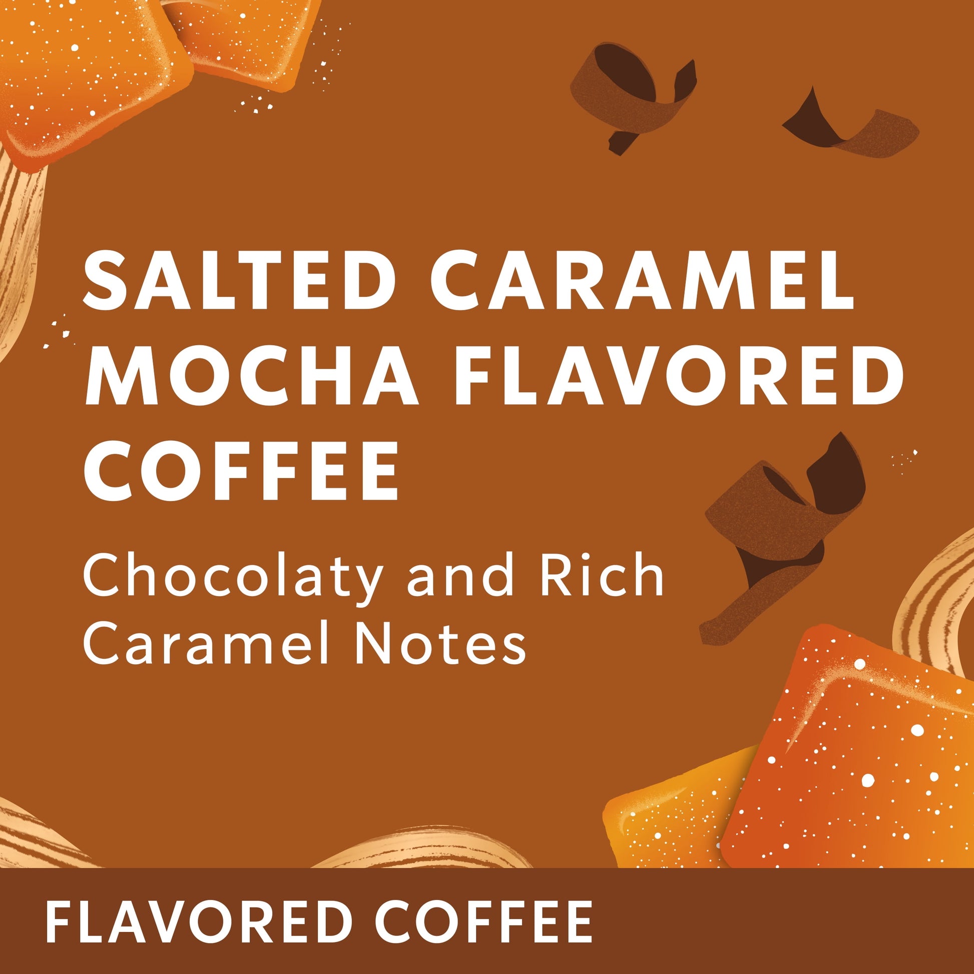 SALTED CARAMEL MOCHA NATURALLY FLAVORED COFFEE: Rich mocha flavors pair perfectly with sweet, salty caramel notes to create a delicate and delicious flavor that will lift up your cup