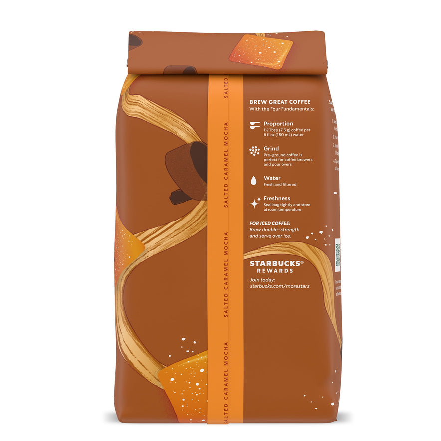 PREMIUM GROUND COFFEE: Starbucks delivers exceptional coffee cup after cup with this limited edition 17-ounce bag of Starbucks Salted Caramel Mocha Naturally Flavored ground coffee