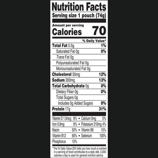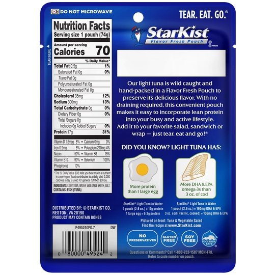 Our light tuna is wild caught and hand-packed in a Flavor Fresh Pouch to preserve its delicious flavor. With no draining required, this convenient pouch makes it easy to incorporate lean protein into your busy and active lifestyle. Add it to your favorite salad, sandwich or wrap - just tear, eat and go! It also works well with Keto, Paleo, Whole30, Mediterranean and Weight Watchers diet plans.