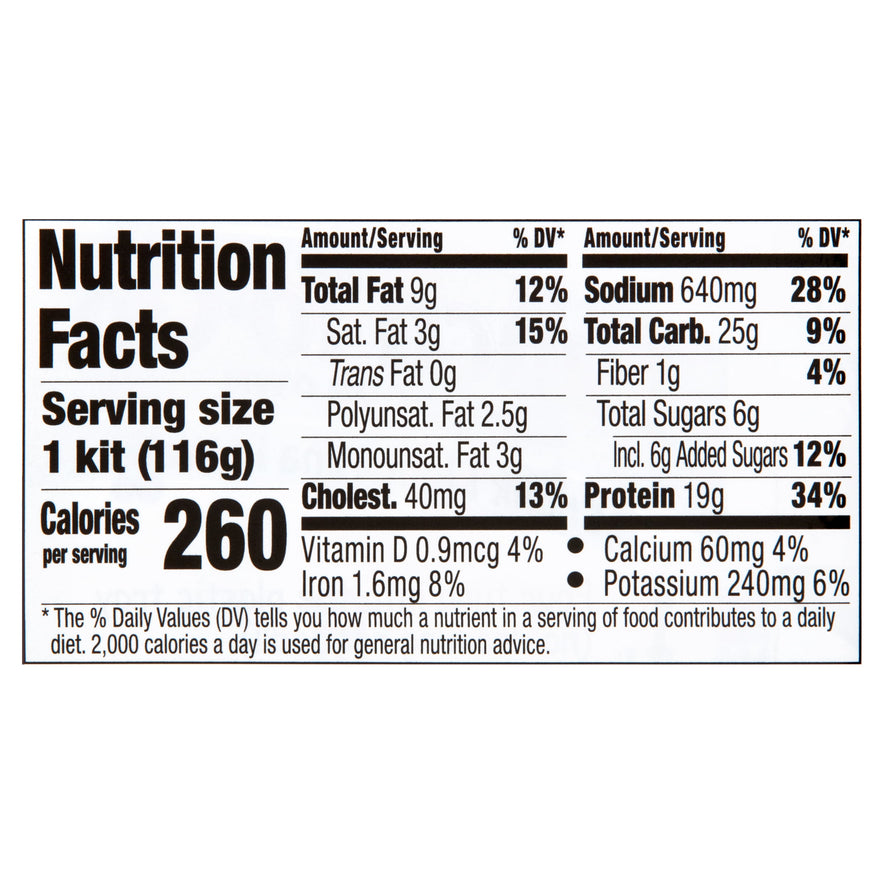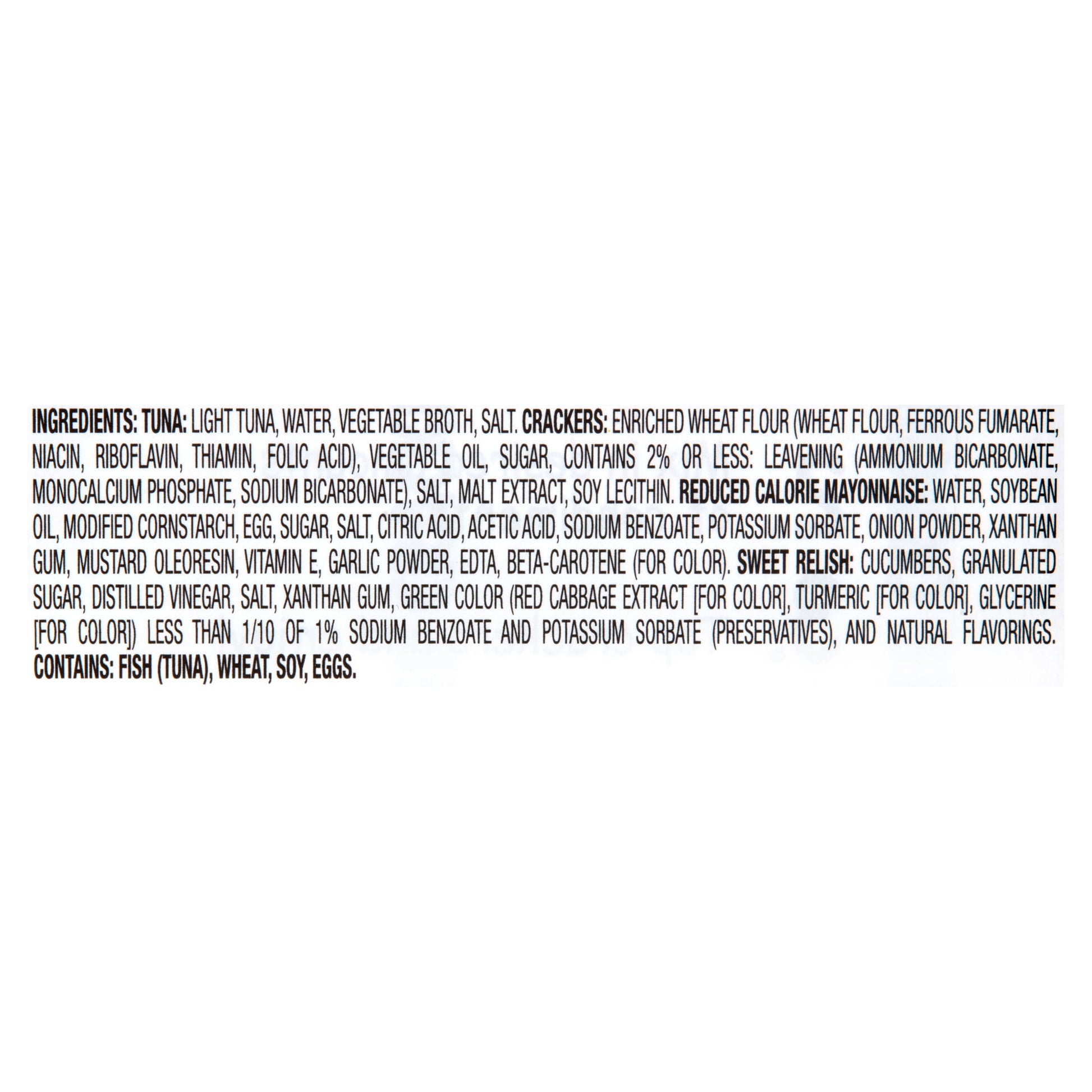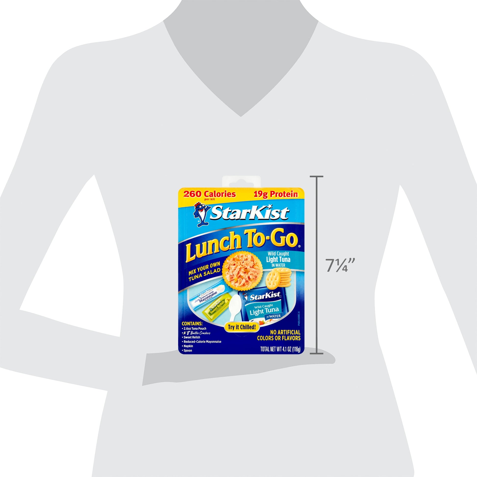 Comes Complete with: (1) StarKist 2.6 oz Chunk Light Tuna in Water Pouch, Reduced Calorie-Mayonnaise and Relish Packets, Mixing Spoon & (8) Butter Crackers with a Napkin