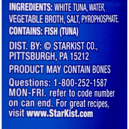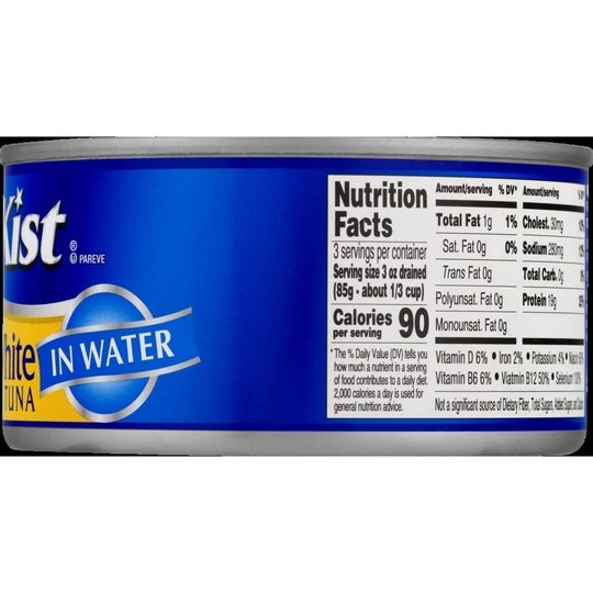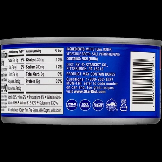 StarKist® Solid White Albacore Tuna in Water can contains a solid fillet of delicious wild caught albacore tuna that you can enjoy in a wrap or on a salad - StarKist® makes it easy to incorporate seafood into your lifestyle .With 90 calories and 19g of protein per serving, this nutrient dense tuna can works well with Mediterranean, Weight Watchers, Keto, Paleo diet plans