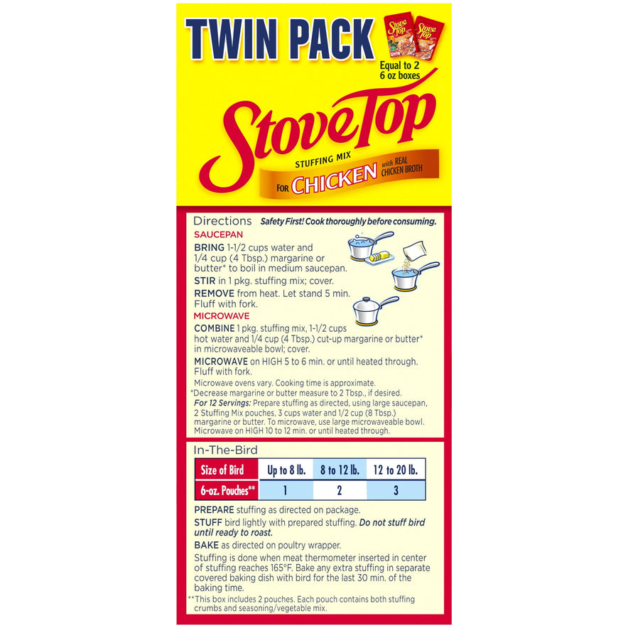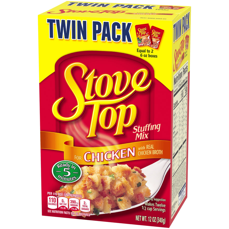 Each box includes a dry, fully seasoned chicken Stove Top stuffing mix