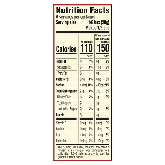 Each package contains 6 servings at 110 calories per serving