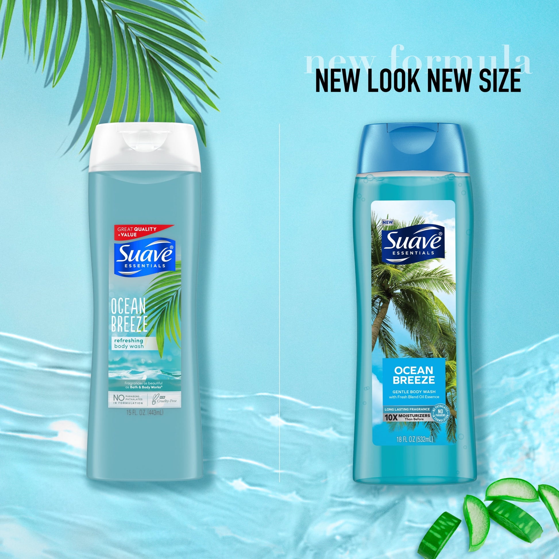 Treat your precious skin to the uplifting ocean fresh scent of this heavenly Suave Essentials Ocean Breeze body wash. This decadent fragrance is a delicious blend of warm sandalwood and enlivening freesia. Turn your shower into a relaxing, fragrant oasis with just the lather of a few body soap bubbles. Our Ocean Breeze body wash for women is infused with vitamin E, known to condition skin. This Suave Essentials shower gel can help leave your skin feeling soft and smooth, not dry. To use, wrap yourself in bubbly lather. Rinse. Feel your skin smile. This liquid body wash creates a rich creamy lather that rinses clean for an enjoyable shower experience. Suave body washes and shower gels are perfect for everyday use and great for the whole family.