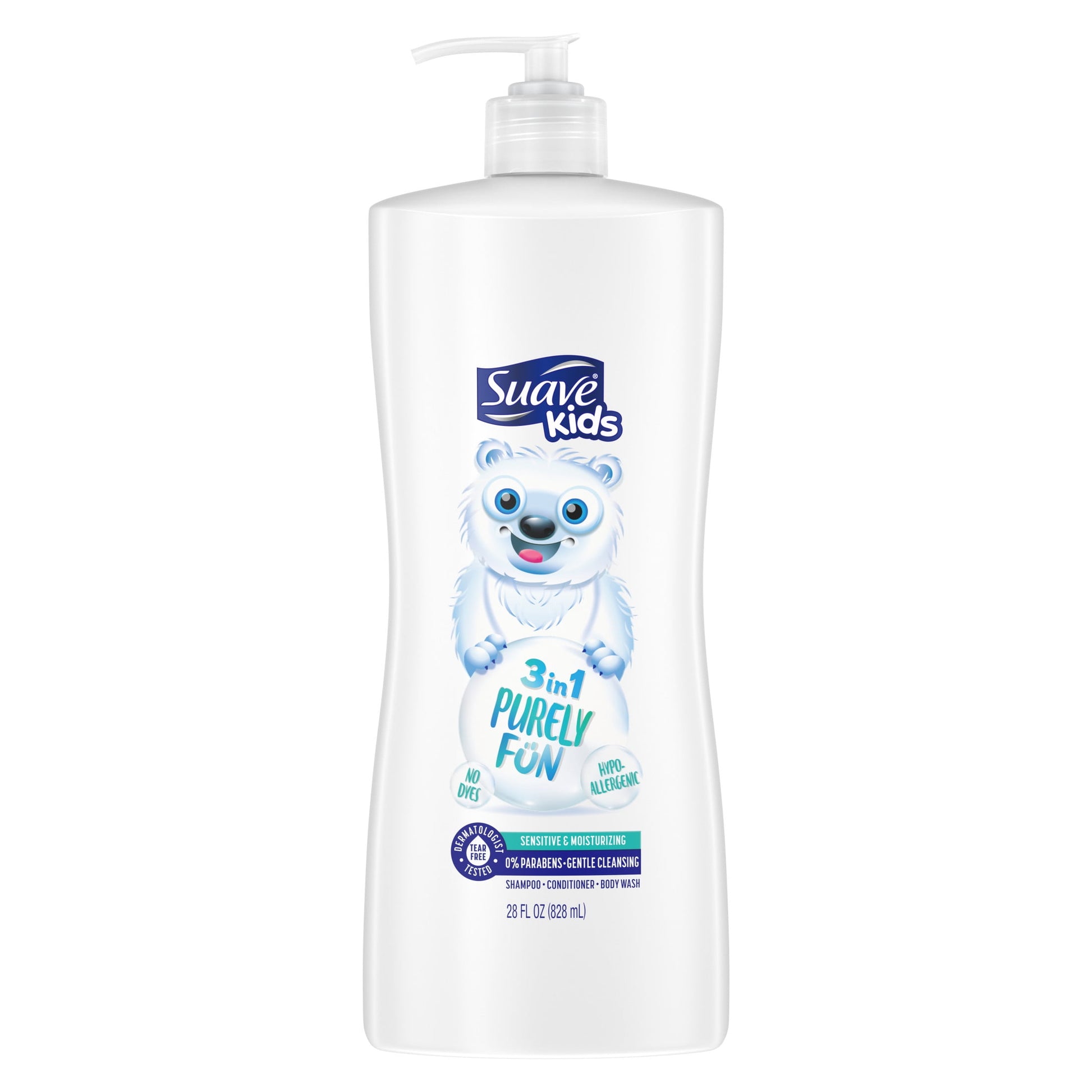 Suave Kids Purely Fun 3-in-1 Shampoo, Conditioner, Body Wash contains no parabens and no dyes